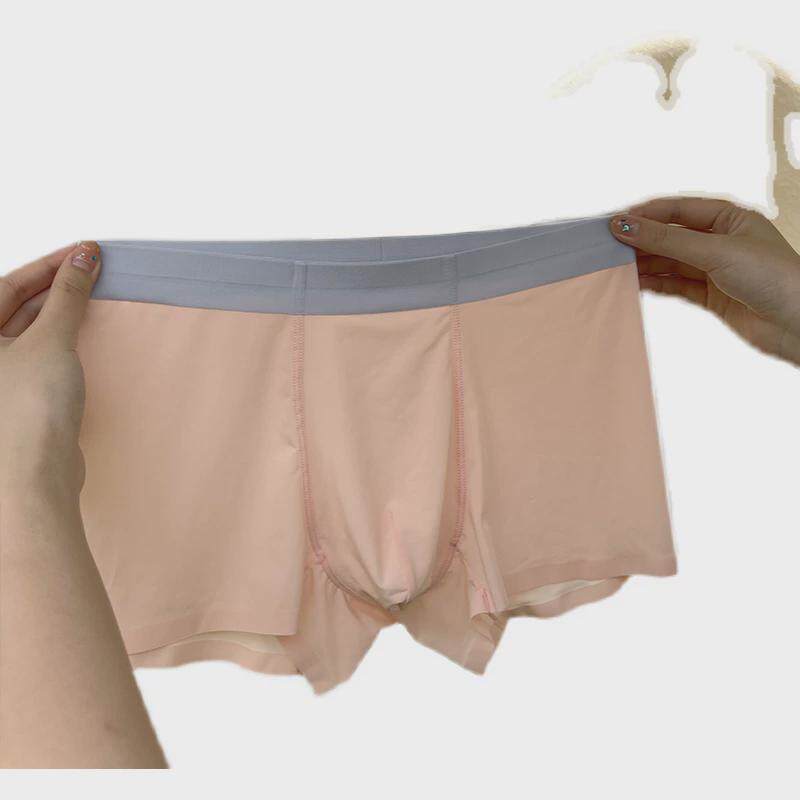冰丝感凸裸少年男士内裤薄软牛奶撞色平角裤u透气夏季裆中腰