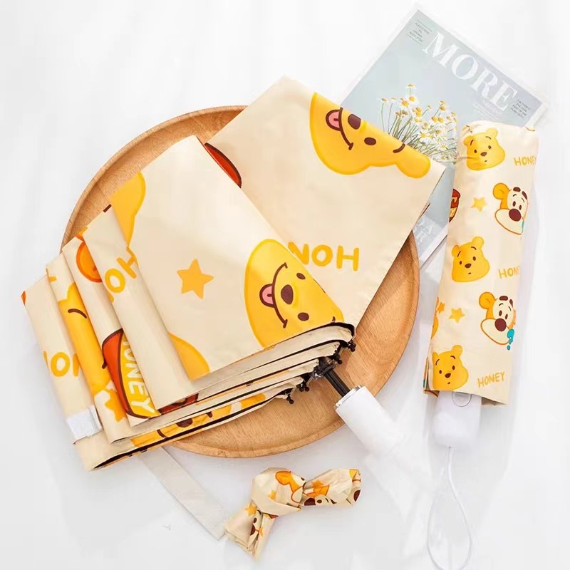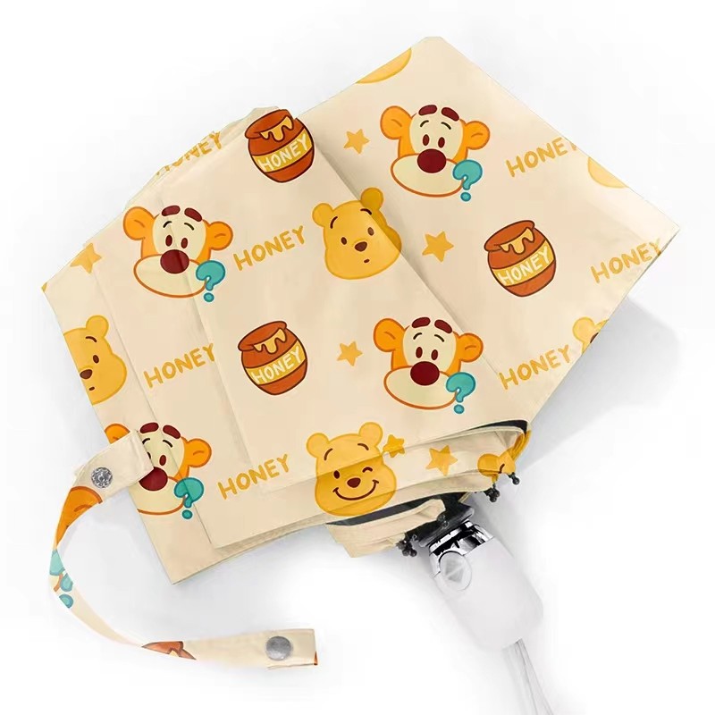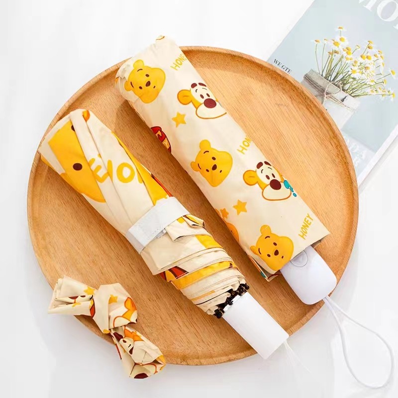 抖音伞厂黄油维尼小熊可爱晴雨伞黑胶防晒折叠晴雨两用雨伞太阳伞