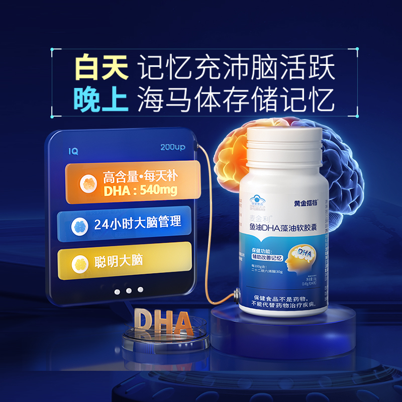 DHA补脑学生记忆力增强高中生青少年鱼油改善儿童成人藻油软胶囊