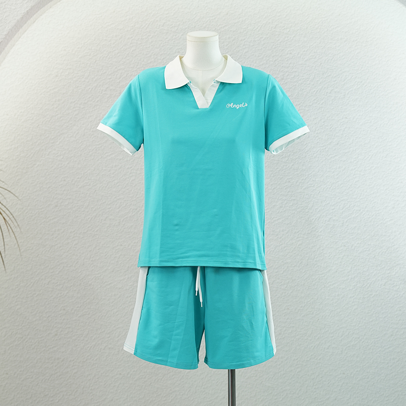 学院风休闲运动服女套装夏女孩刺绣透气短袖短裤体操服学生两件套