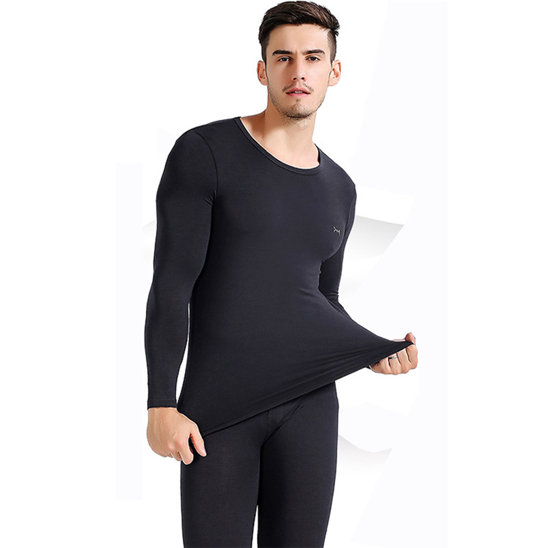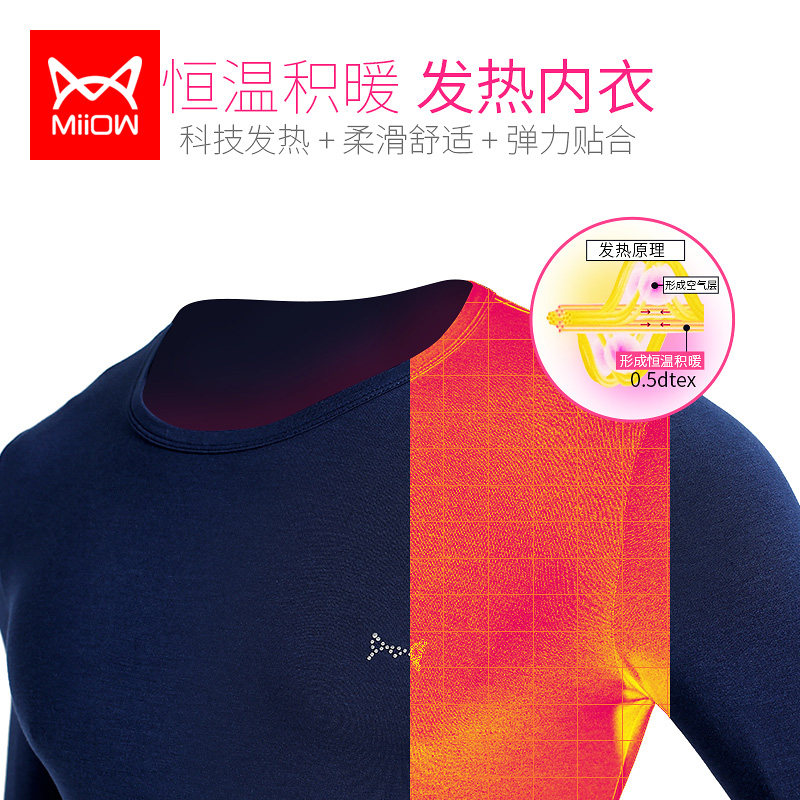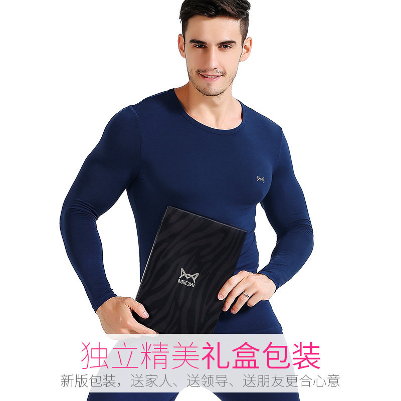 猫人保暖内衣德绒发热丝莫代尔薄款男士圆领秋衣秋裤棉毛衫套装