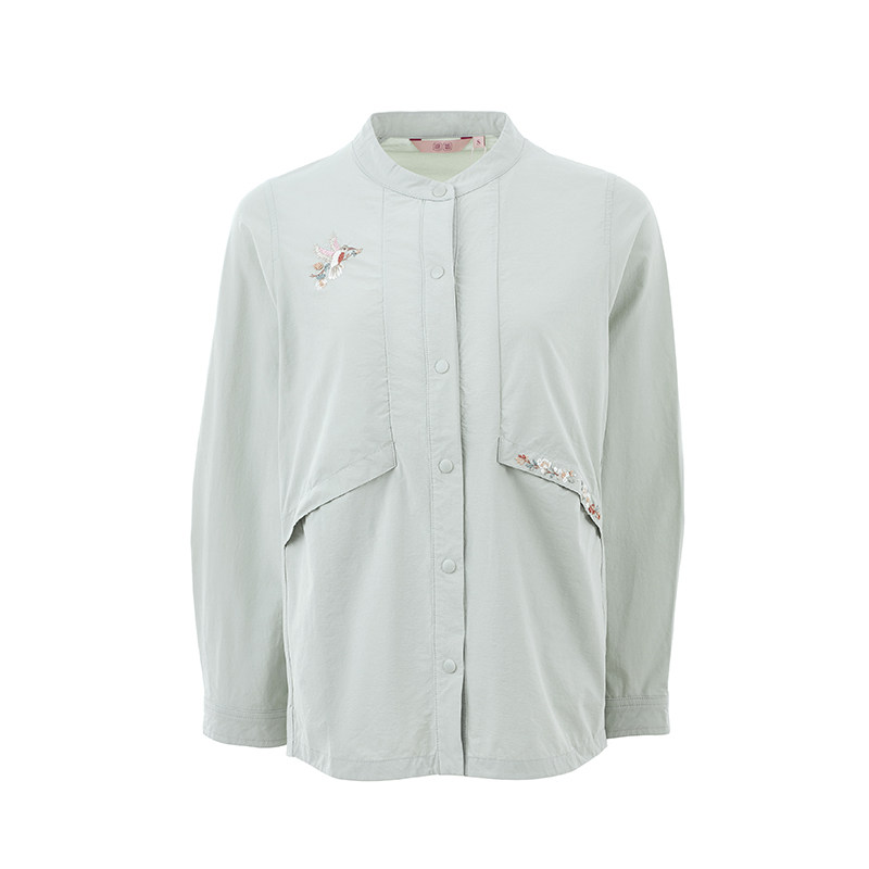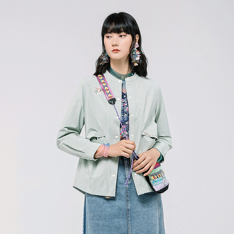 渔牌女装春季新款圆领休闲风衣料弹力短款外套女上衣FGGA3003