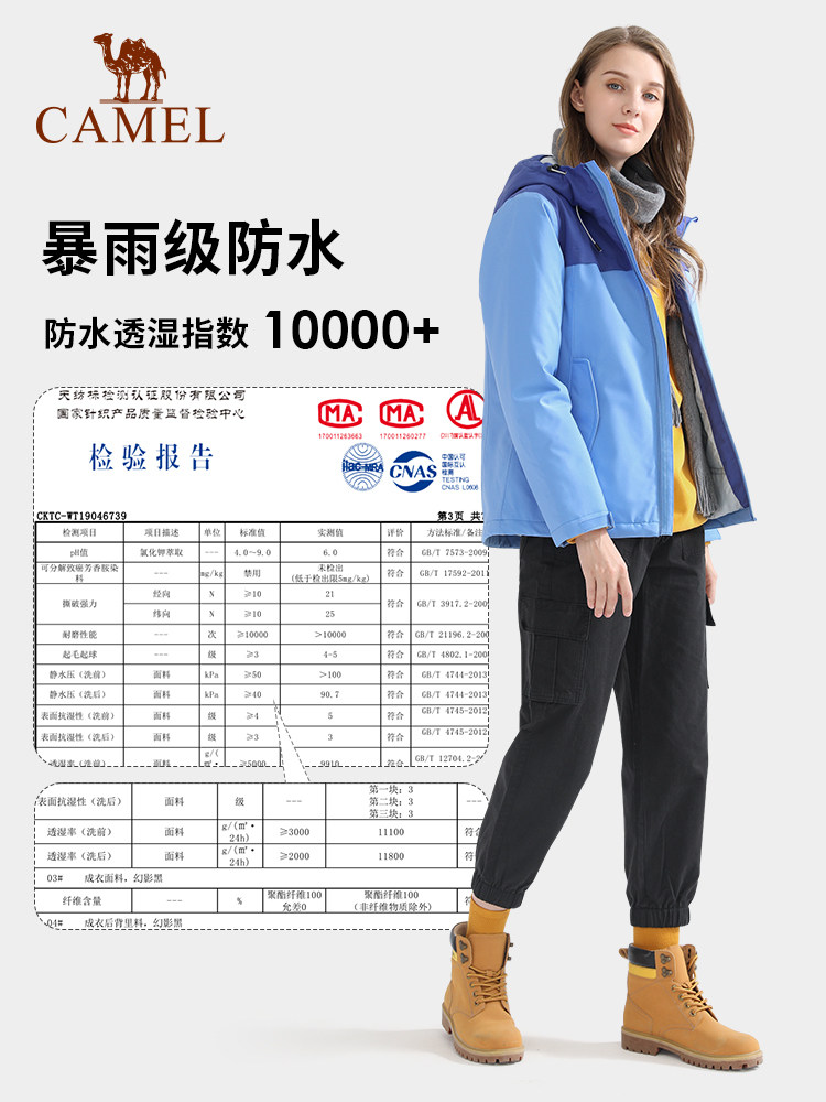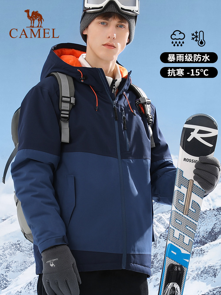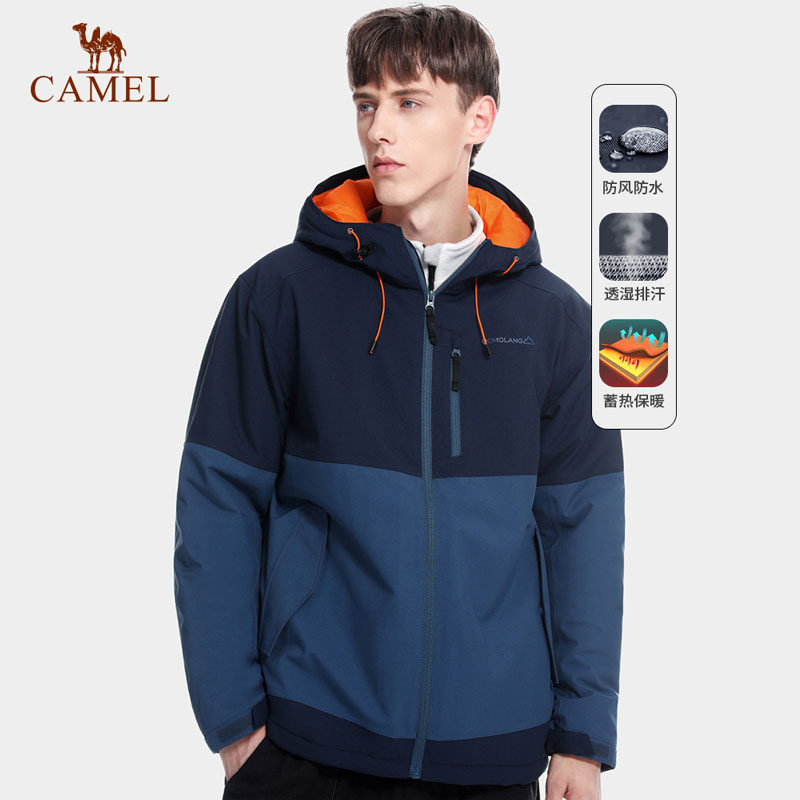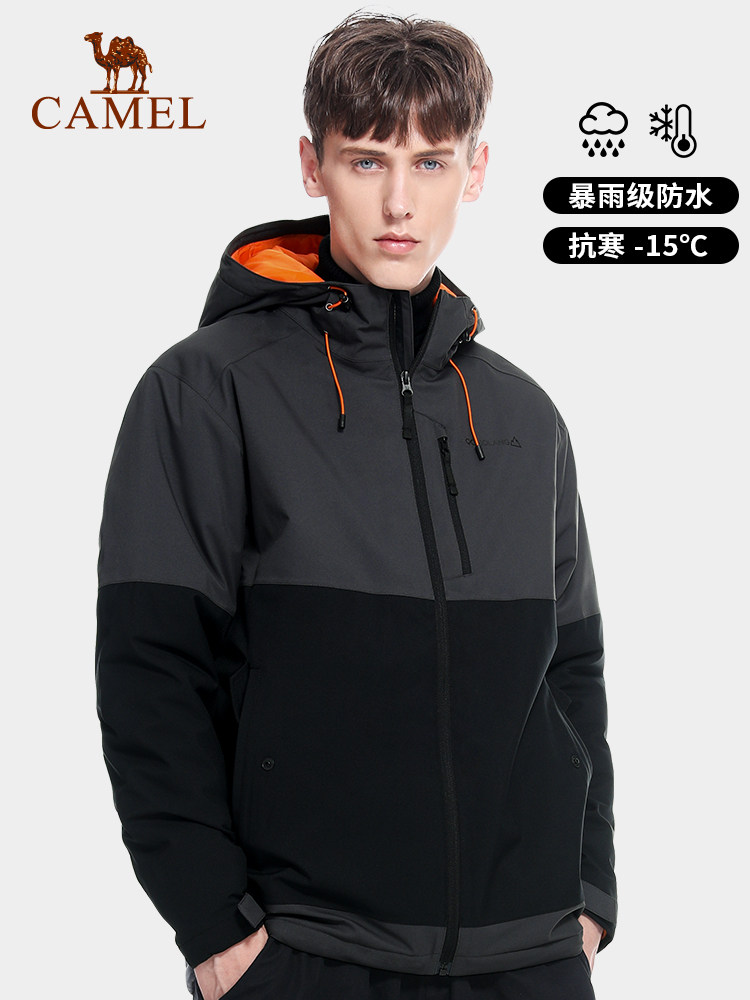 骆驼珠穆朗玛系列夹棉冲锋衣男女拼撞色户外防水登山棉服夹克外套
