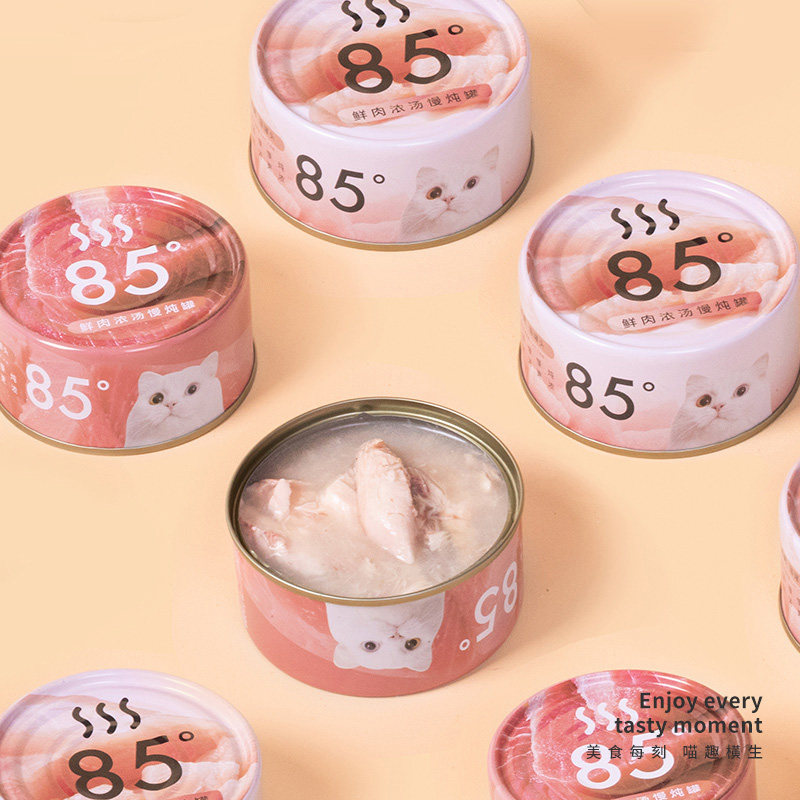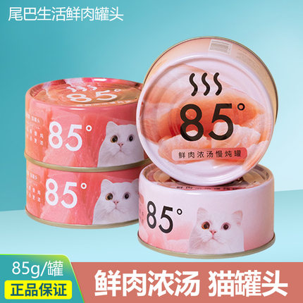 尾巴生活85度猫咪罐头鲜肉湿粮幼小猫零食金枪鱼三文鱼虾鸡肉85g