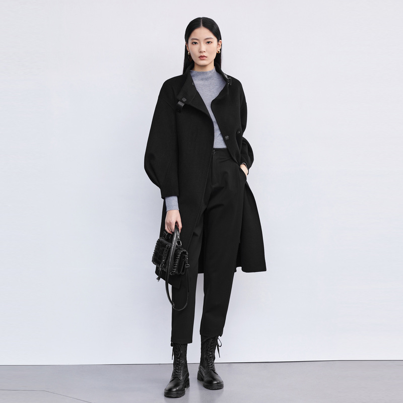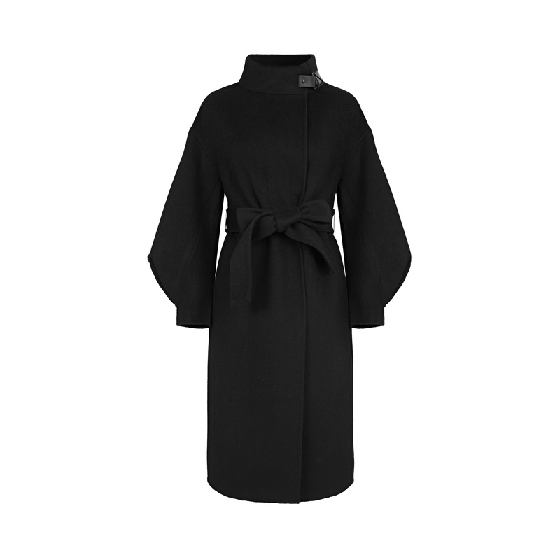 sdeer圣迪奥冬装女立领收腰泡泡袖毛呢长款大衣S224Z2531