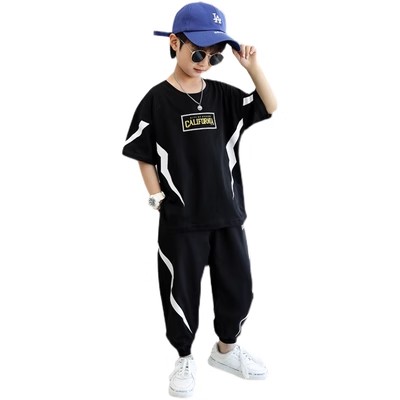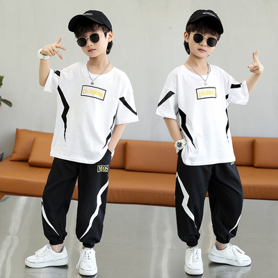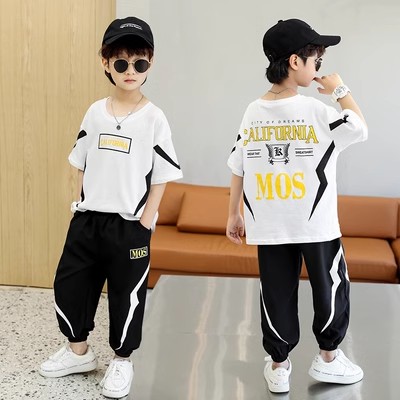 儿童男童夏装套装2025新款中大童潮夏季帅气男孩短袖防蚊裤两件套
