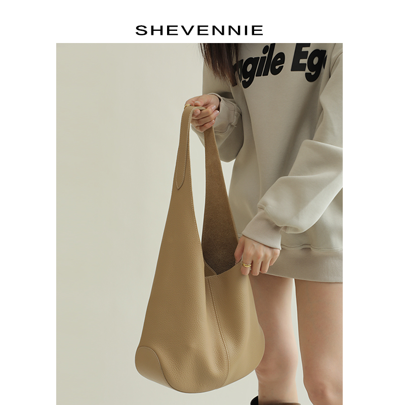 shevennie新款 头层牛皮单肩包水桶包托特包高级感大包包女包
