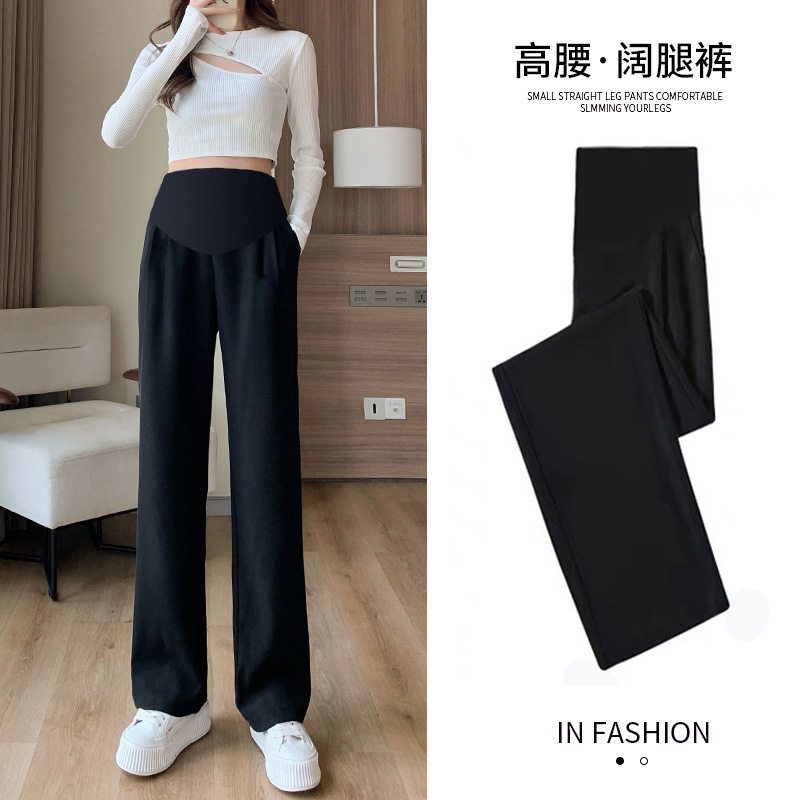 孕妇裤子春秋外穿时尚阔腿裤春y夏薄款垂感托腹长裤宽松加长直筒