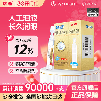 瑞珠玻璃酸钠滴眼液30支眼干涩眼疲劳润眼液一次性人工泪液眼药水