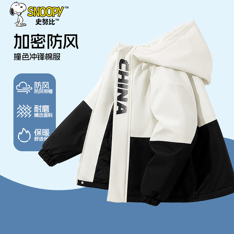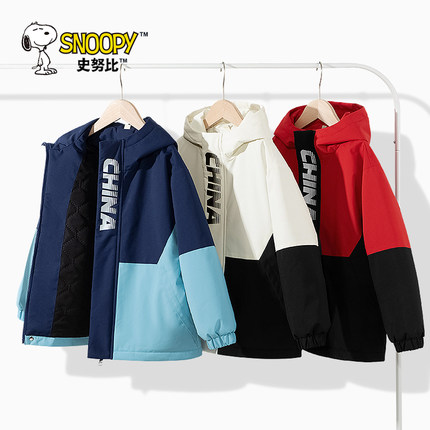 史努比男孩外套秋冬款2025新款冬装上衣儿童装撞色棉服男童冲锋衣