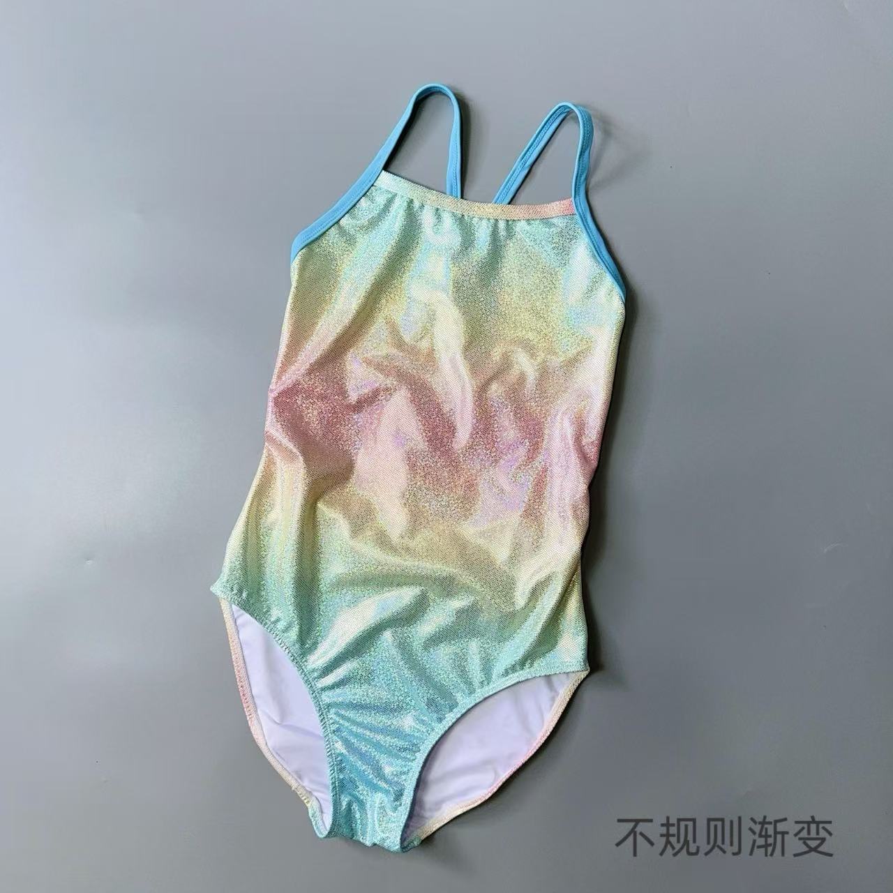 Amber泳衣女士高级感烫金渐变竞速专业训练连体游泳衣温泉无胸垫