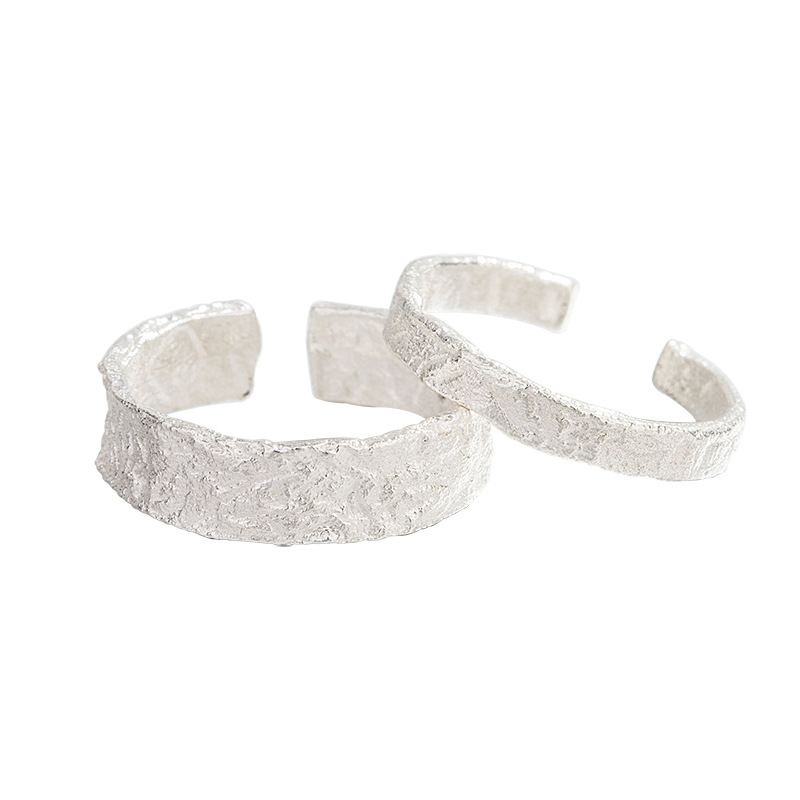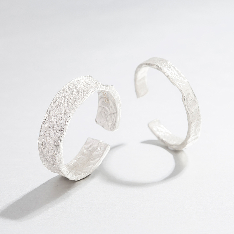 石纹情侣戒指纯银一对女ins小众个性简约男对戒开口素圈刻字指环