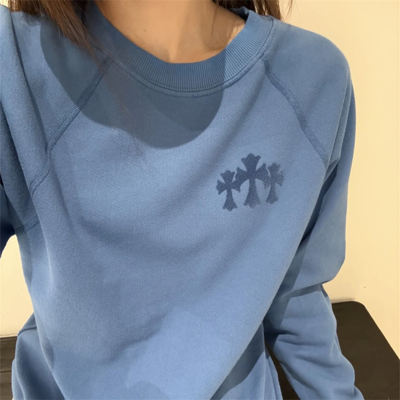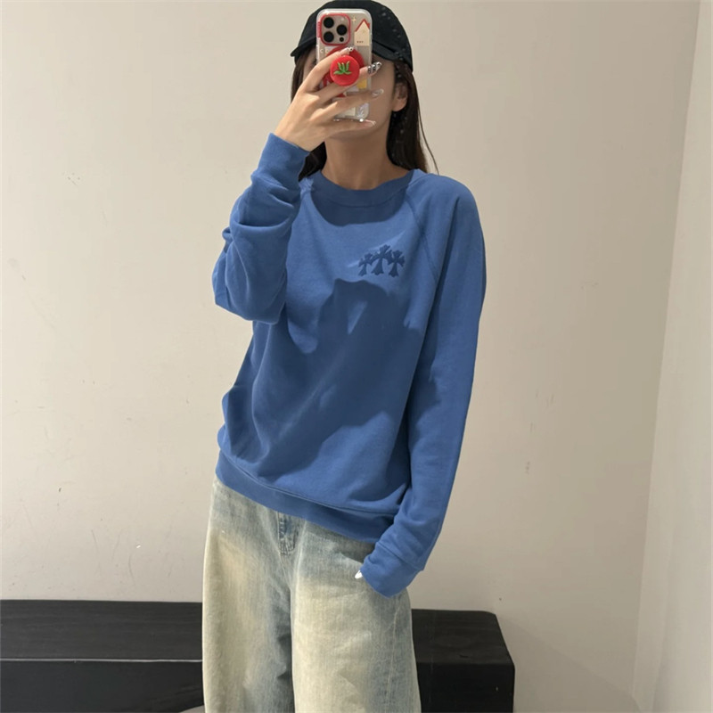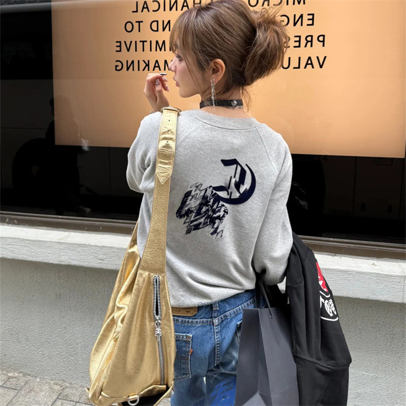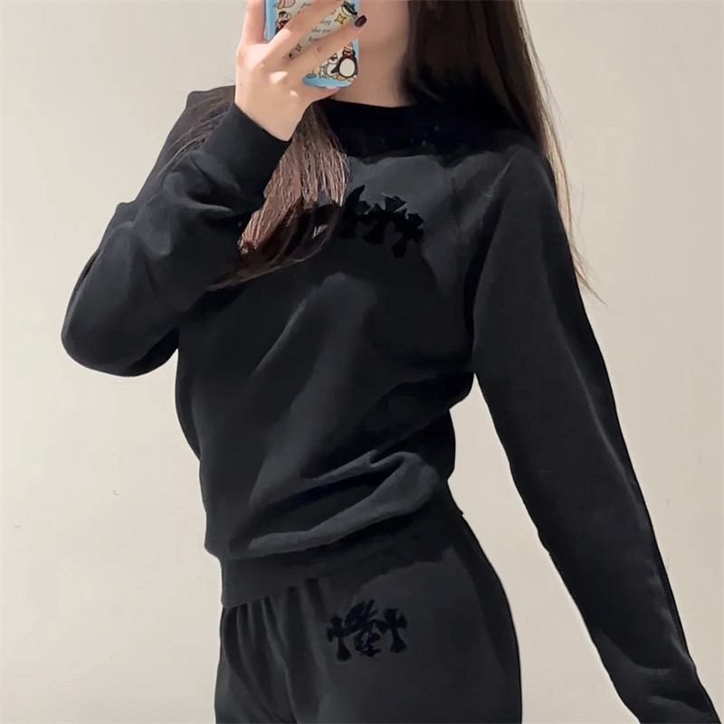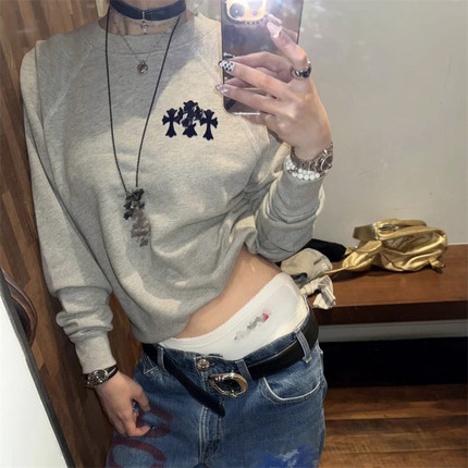 三十字架植绒卫衣女秋季新款小众圆领套头设计感显瘦百搭洋气上衣
