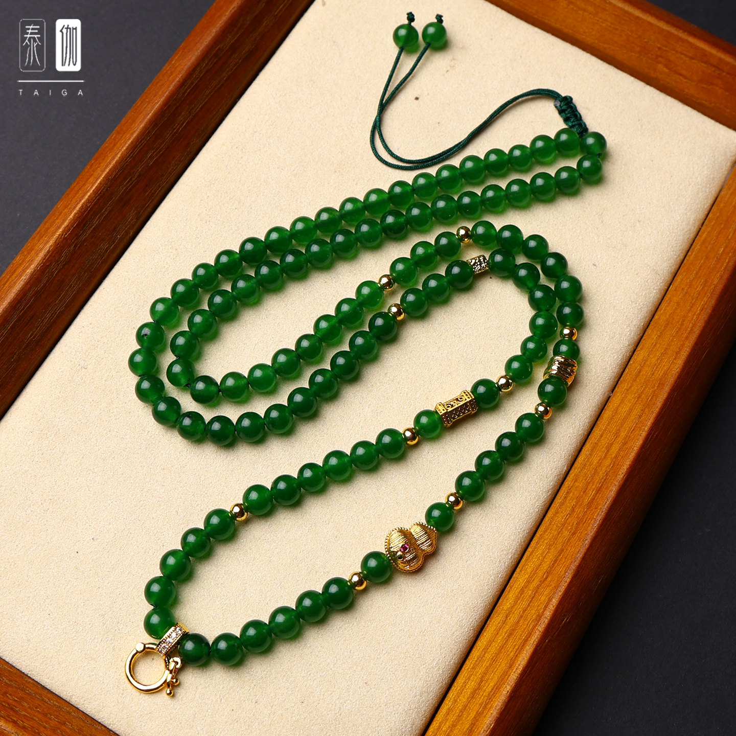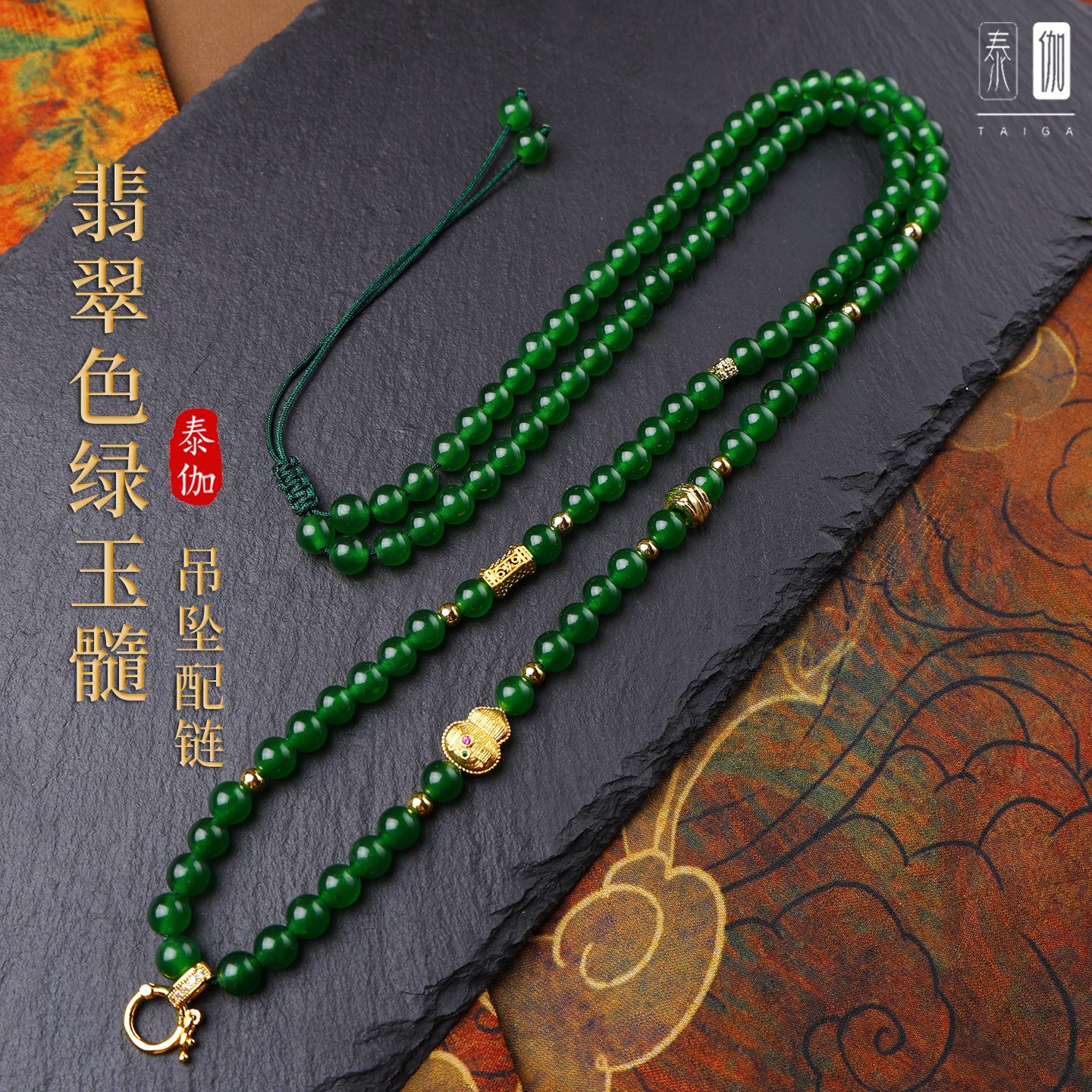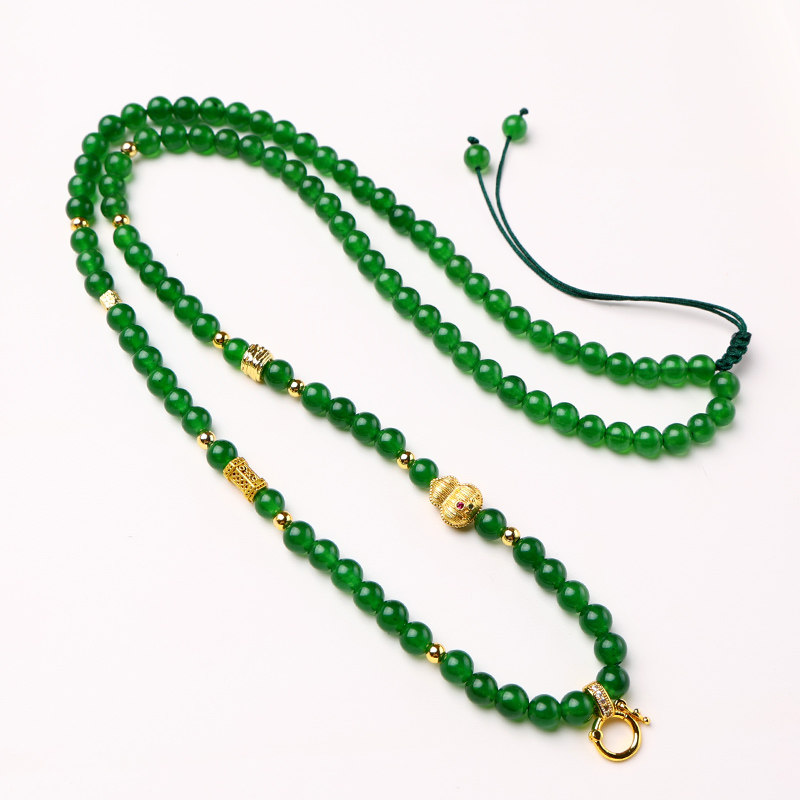 泰国佛牌链子唐卡挂链新中式翡翠色绿玉髓圆珠项链女款玉佛吊坠绳
