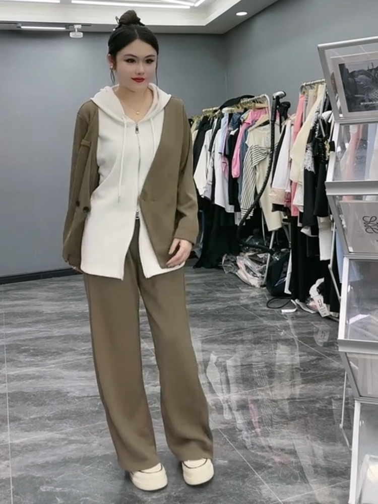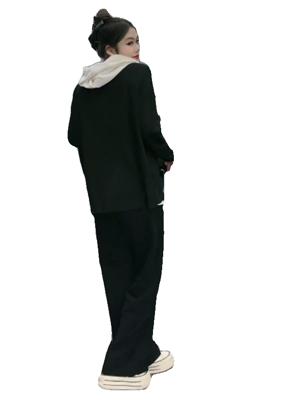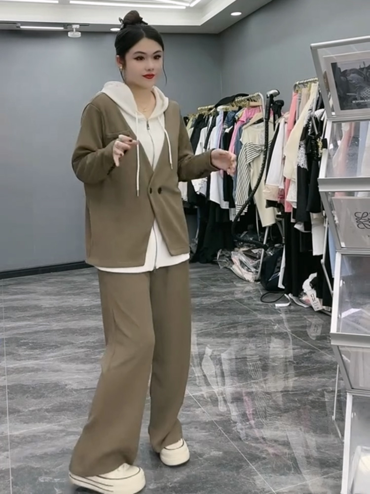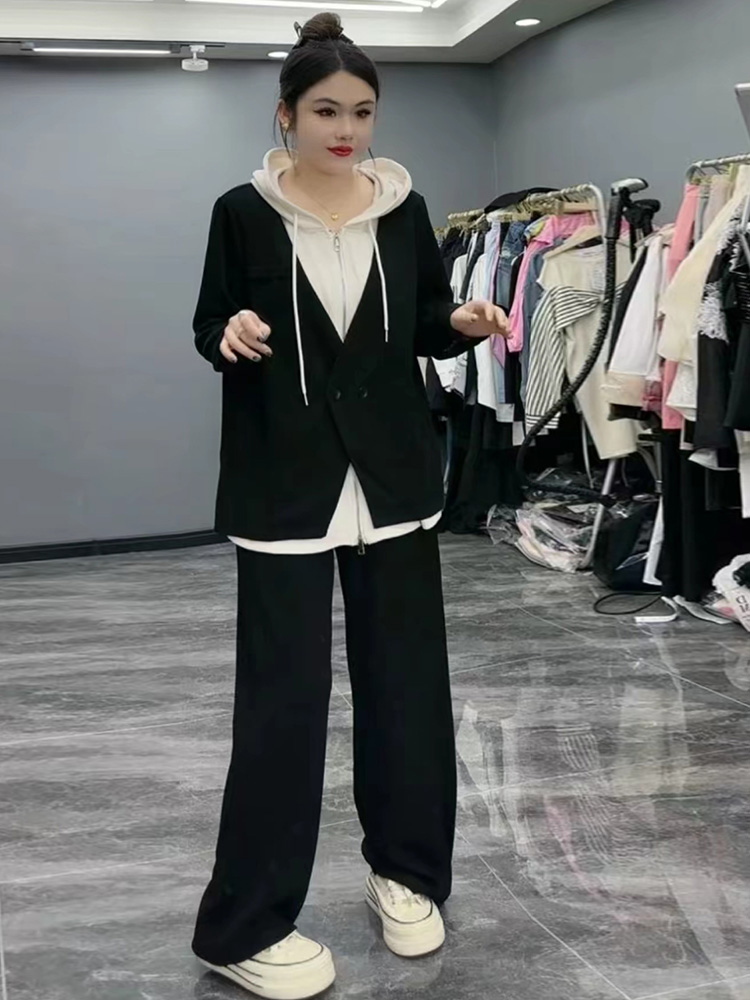 胖妹妹春季新款大码女装韩版慵懒风假两件连帽上衣阔腿裤两件套女
