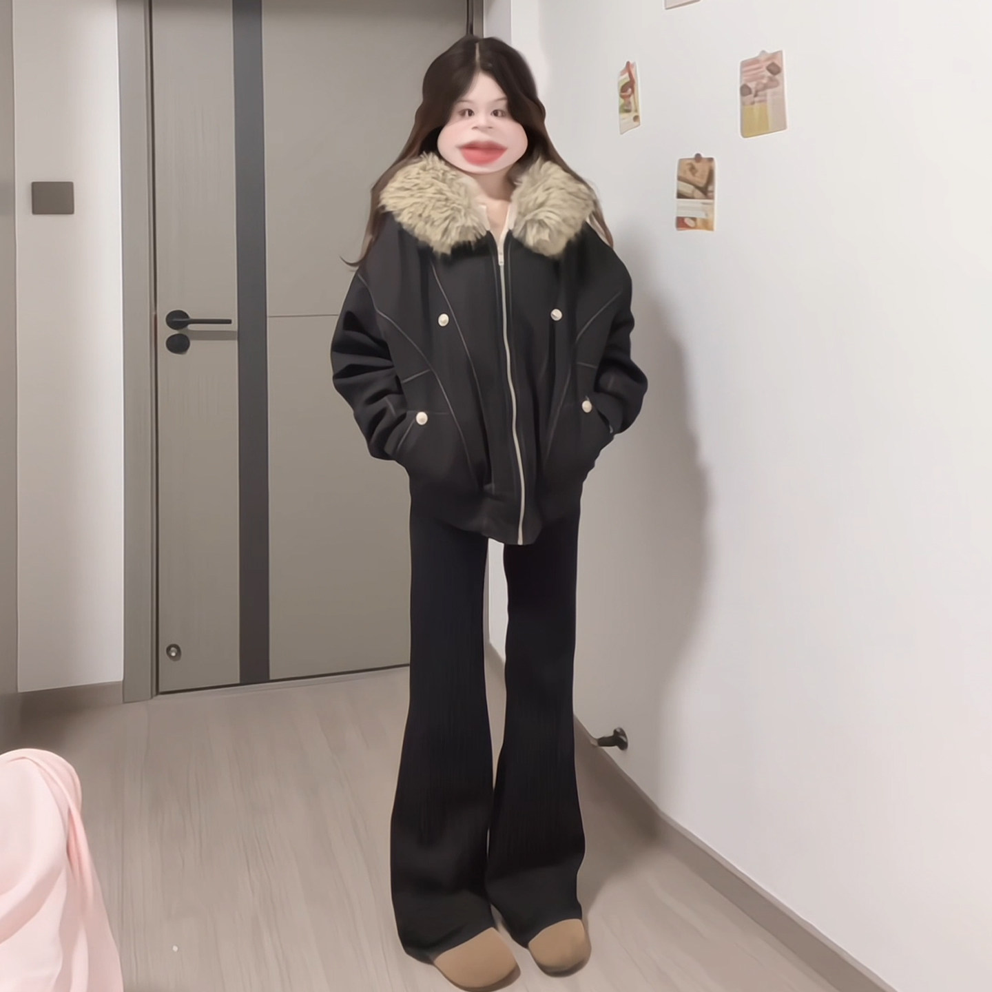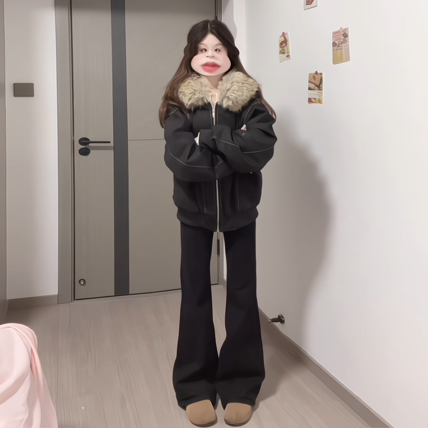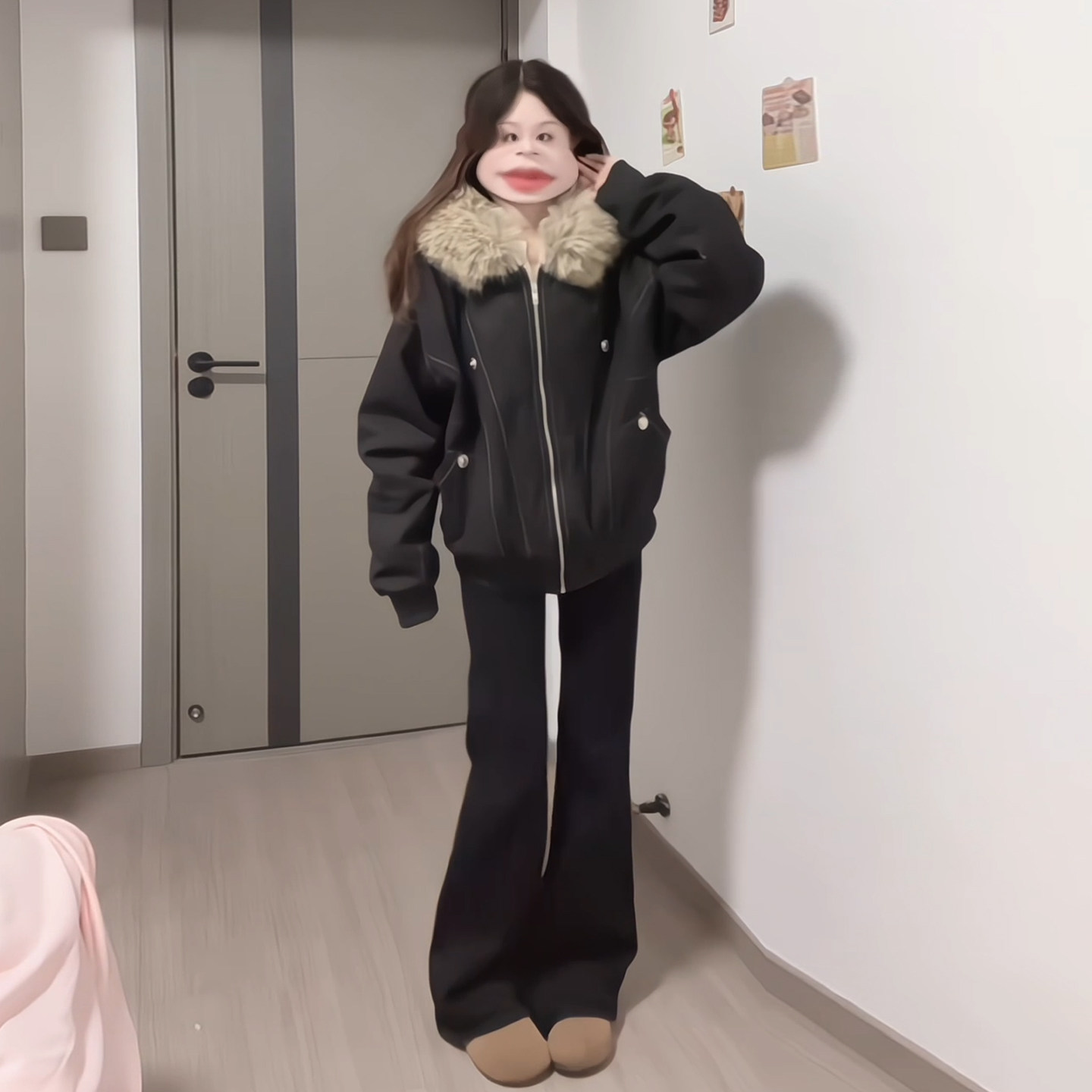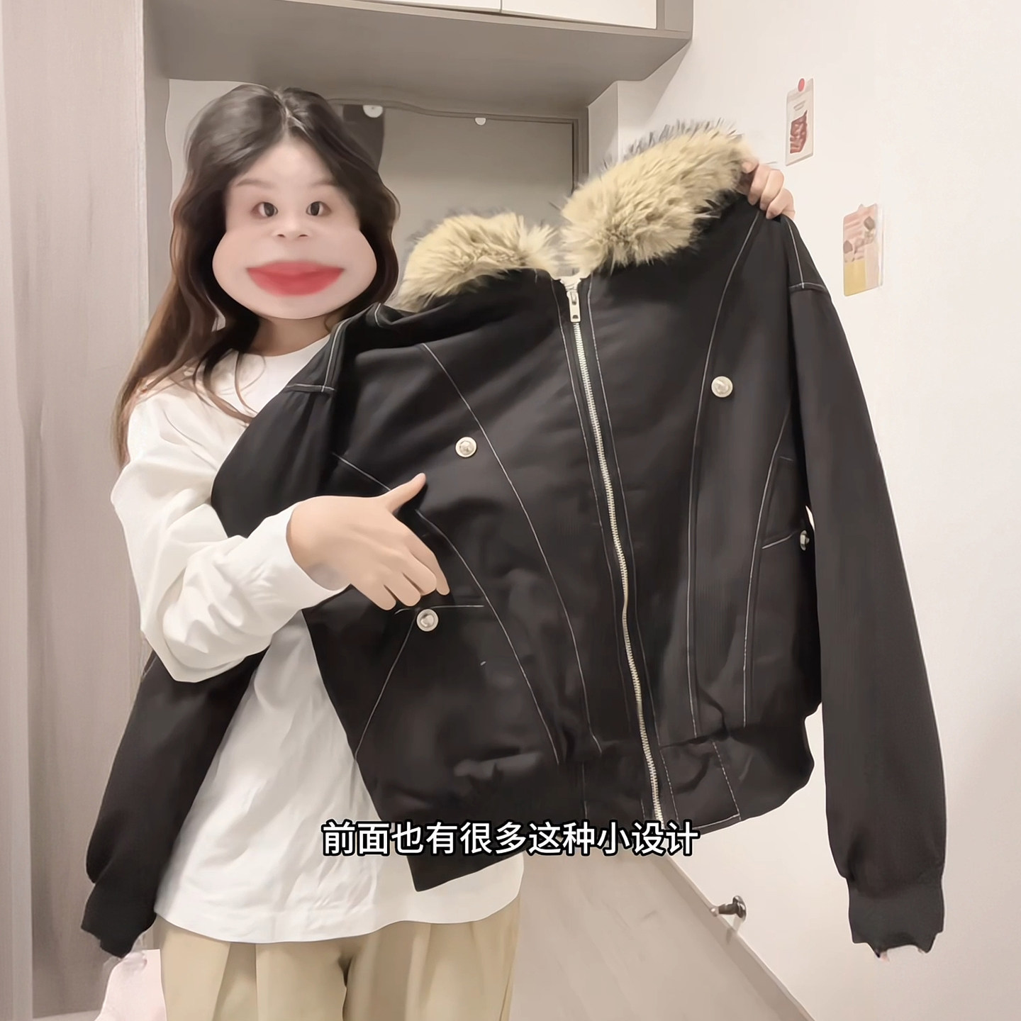 高街毛领连帽棉服胖mm宽松加厚