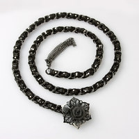 韩版时尚连衣裙装饰金属细腰带女花朵大码配皮草简约复古腰链加长