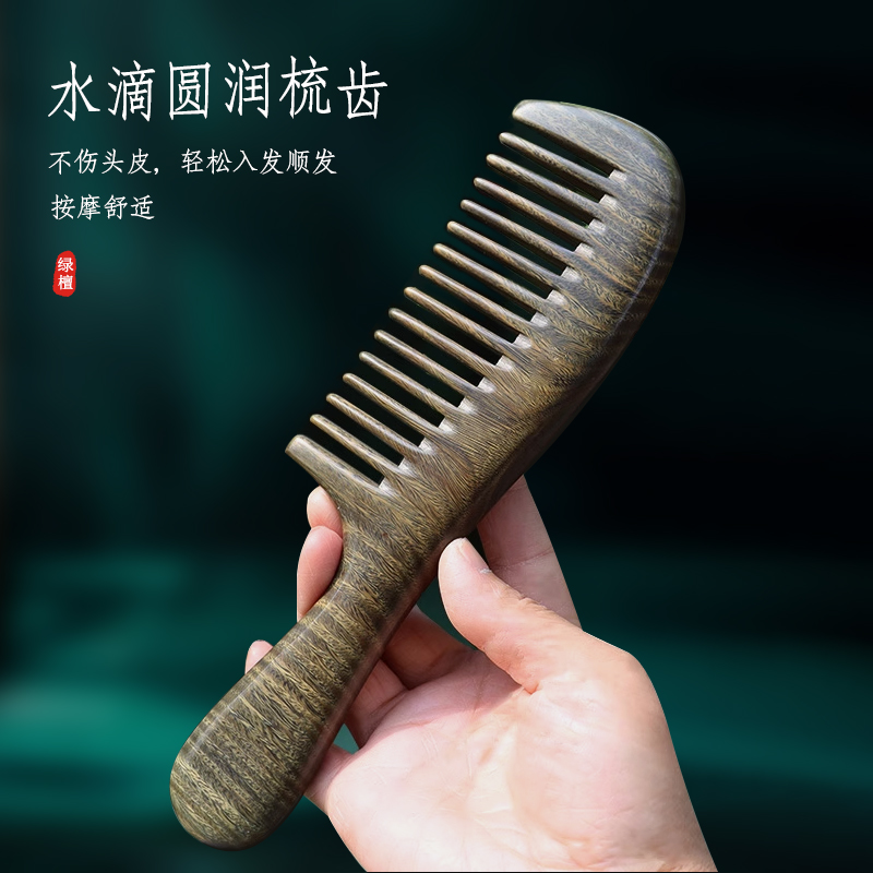 绿檀木梳子按摩套装玉檀木家用檀木男女士长发专用送礼物定制刻字