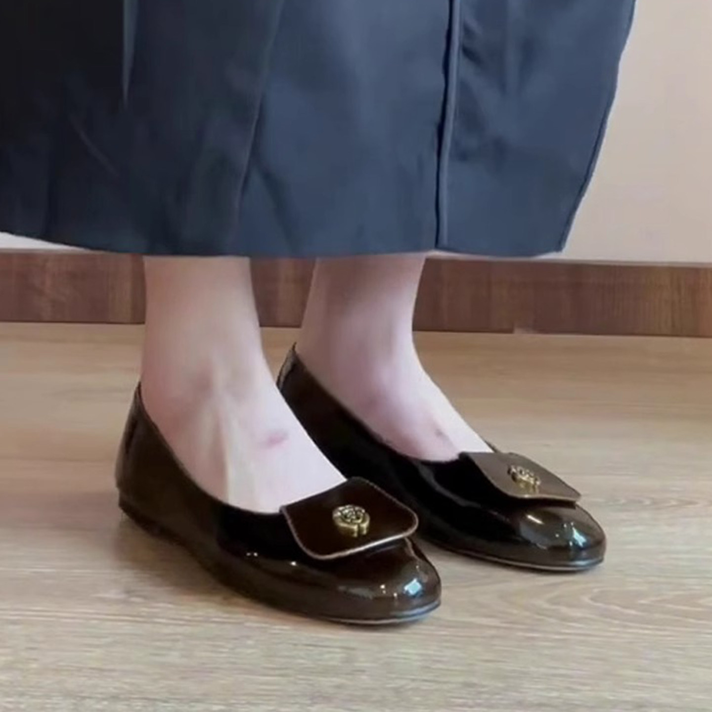 羊皮版~法式复古圆头平底玛丽珍鞋女配裙子小香风温柔一脚蹬单鞋