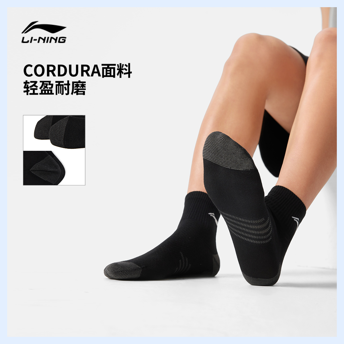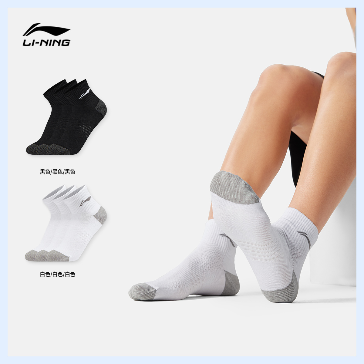 李宁短筒男女同款短袜三双装