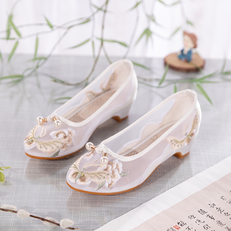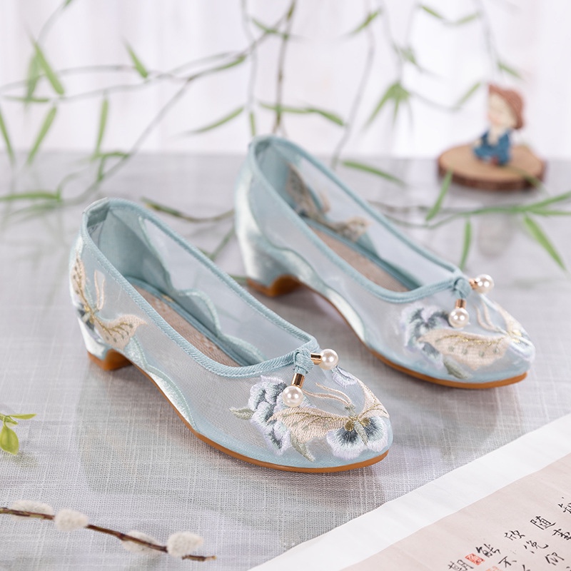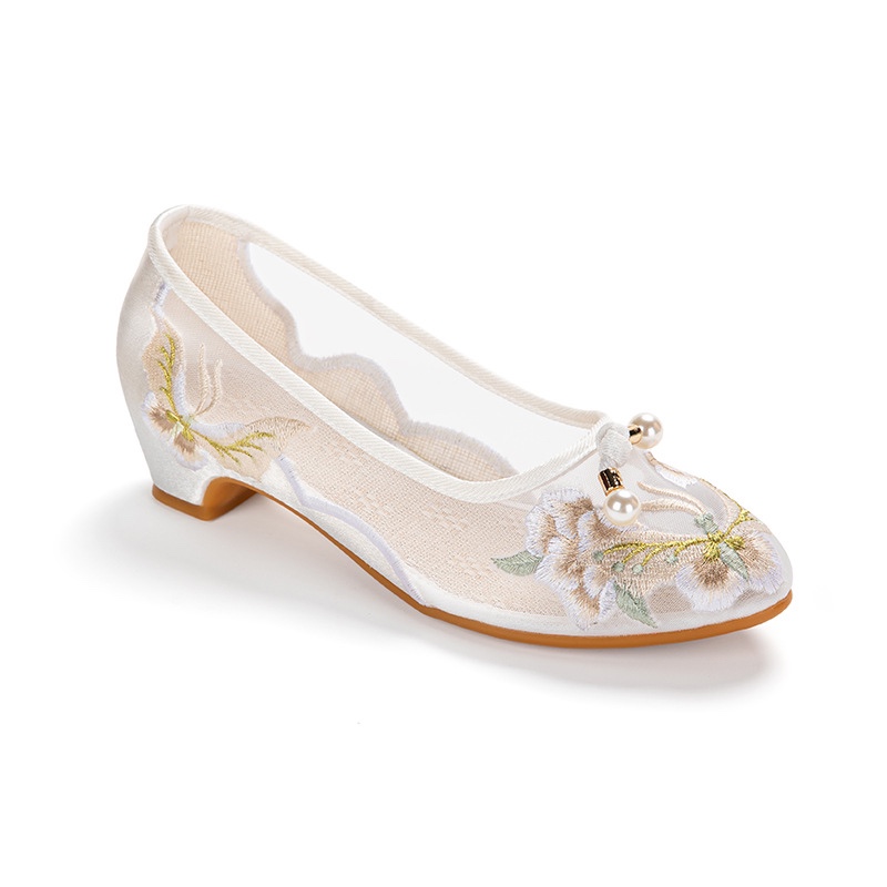 夏季尖头网纱刺绣老北京布鞋女式中低跟软底透气镂空民族风绣花鞋