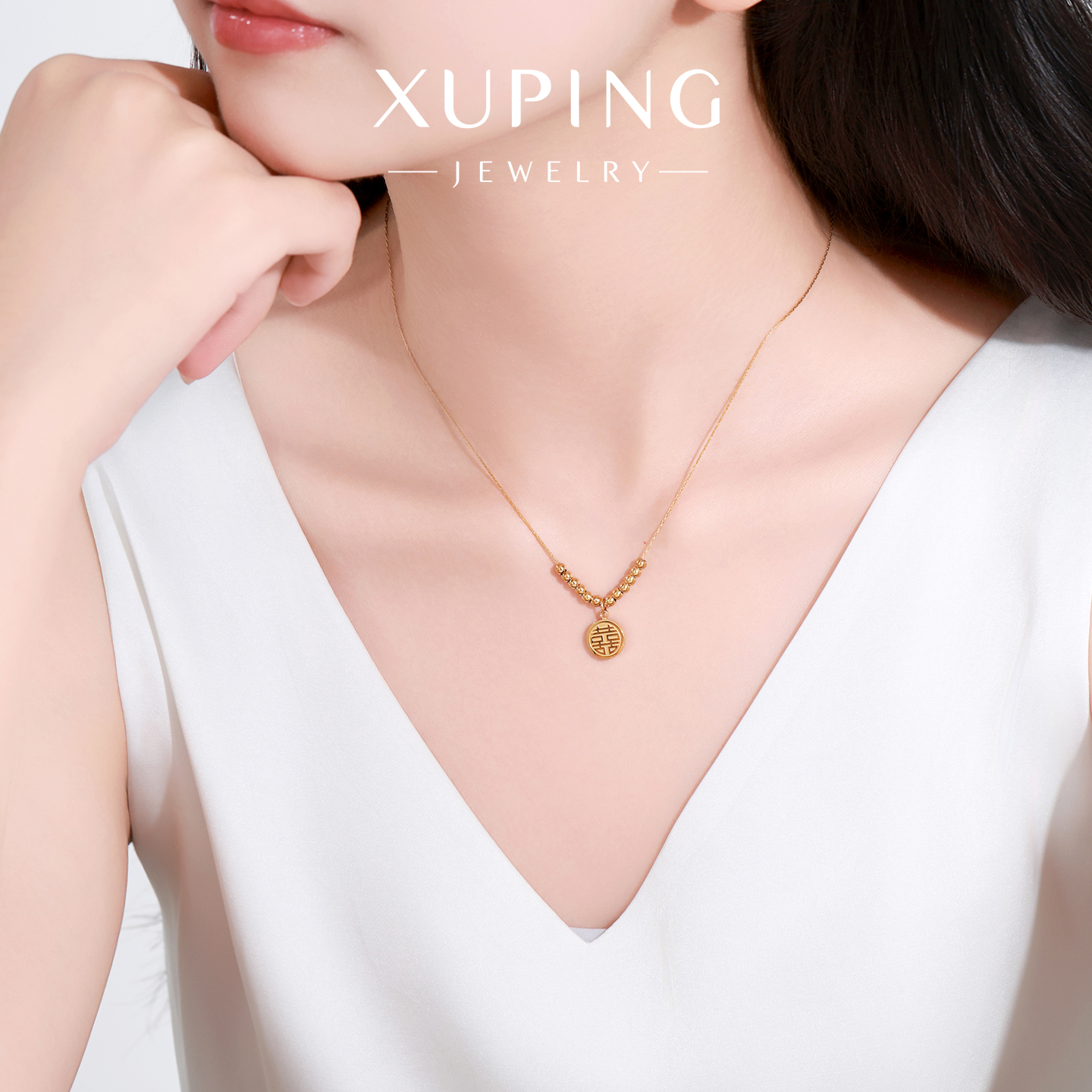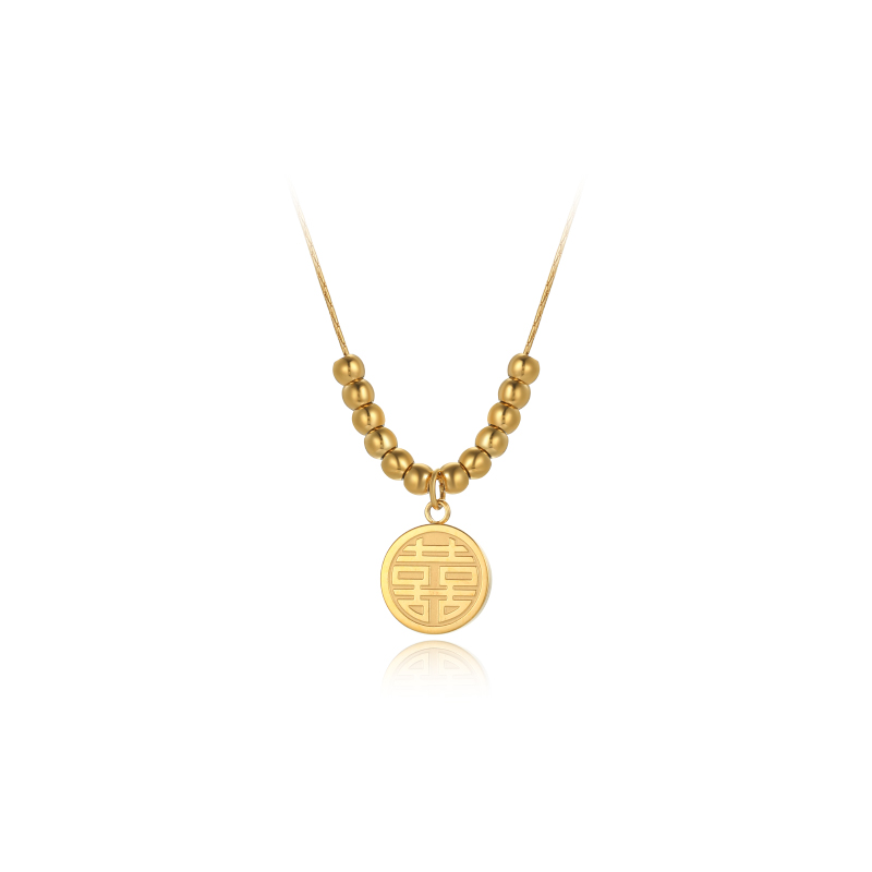 旭平福囍双面字两戴项链新中式气质时尚复古仿黄金色锁骨链