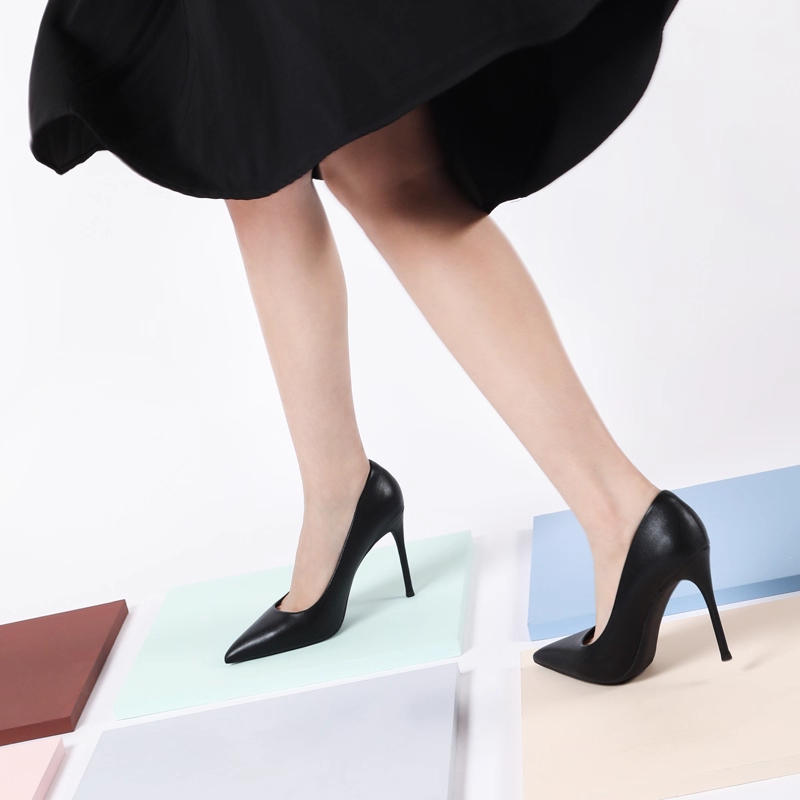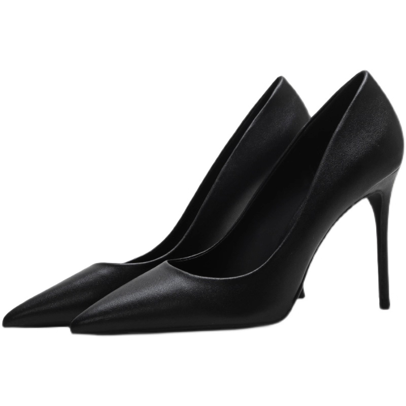 小码313233黑色高跟鞋女细跟百搭尖头性感职业工作单鞋大码41一43