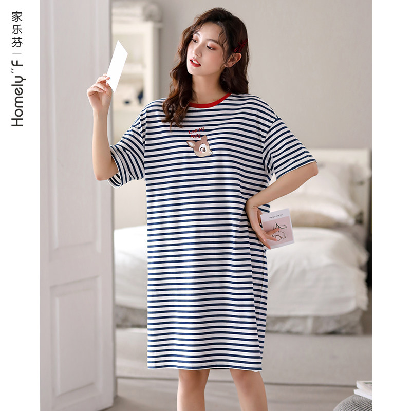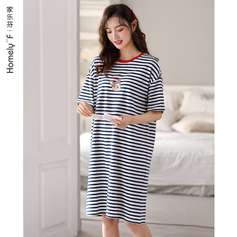 睡裙女士睡衣夏季夏天薄款纯棉短袖长款家居服孕妇加大码宽松可爱