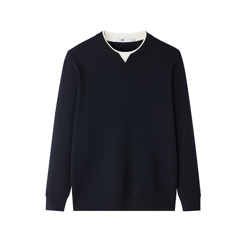 HLA/海澜之家休闲长袖针织衫2025秋季新款圆领套头时尚毛衣男