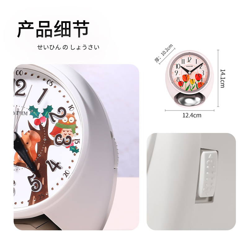 RHYTHM日本丽声闹钟家用超静音卧室床头桌面时钟学生宿舍夜光闹钟