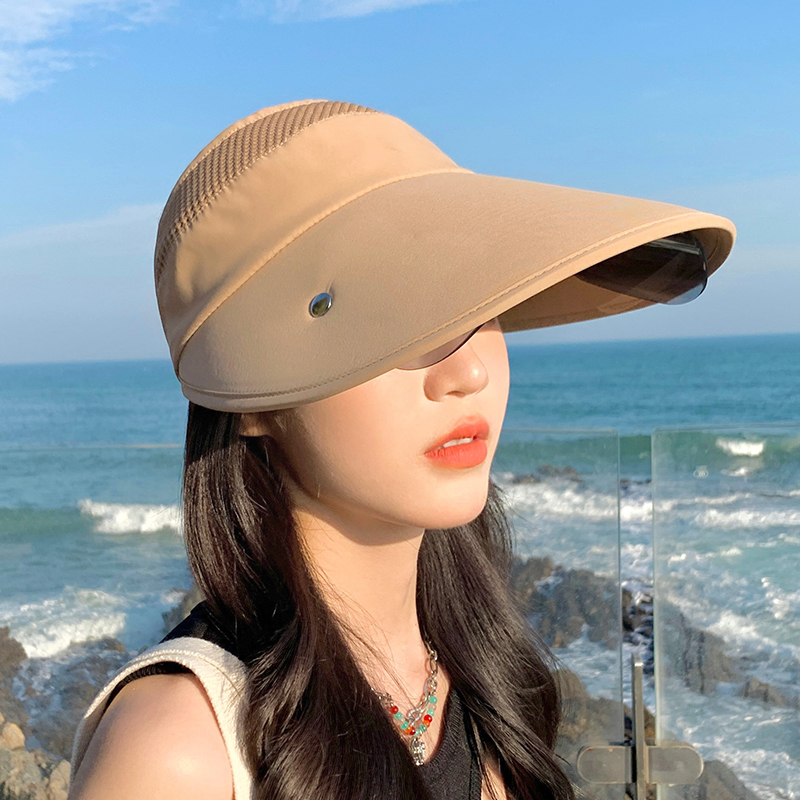 夏季遮阳帽女电动车骑行大檐防晒空顶帽遮脸百搭户外太阳帽带镜片