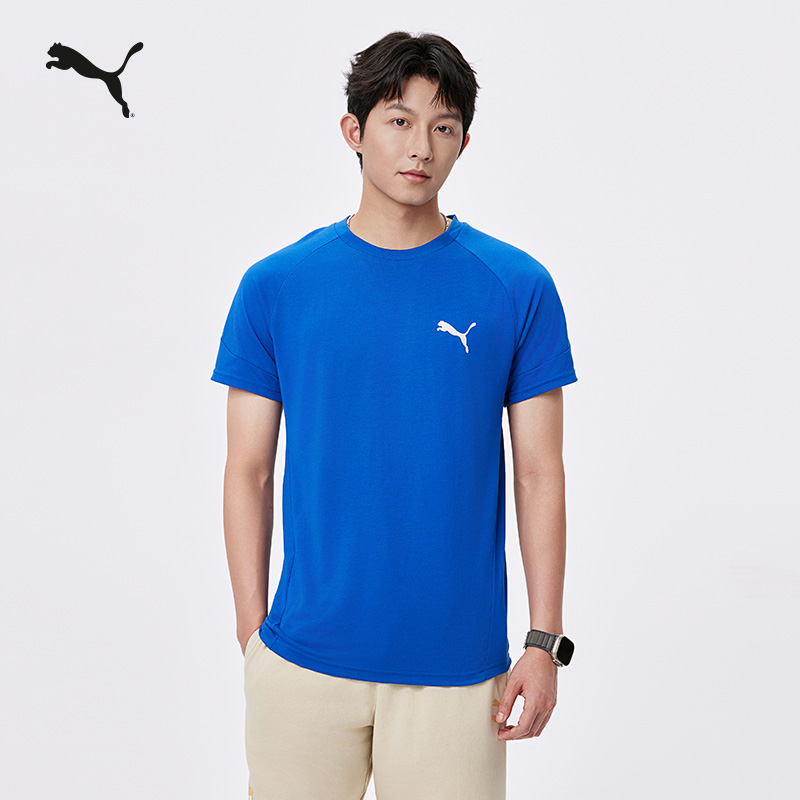 复古修身休闲短袖T恤男女款PUMA彪马官方夏季蓝色运动上衣 690664