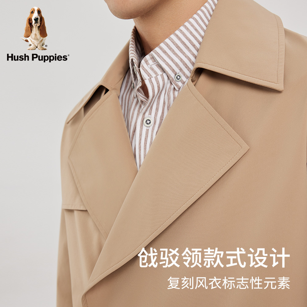 Hush Puppies暇步士男装秋经典款商务休闲时尚中长款挺括风衣外套
