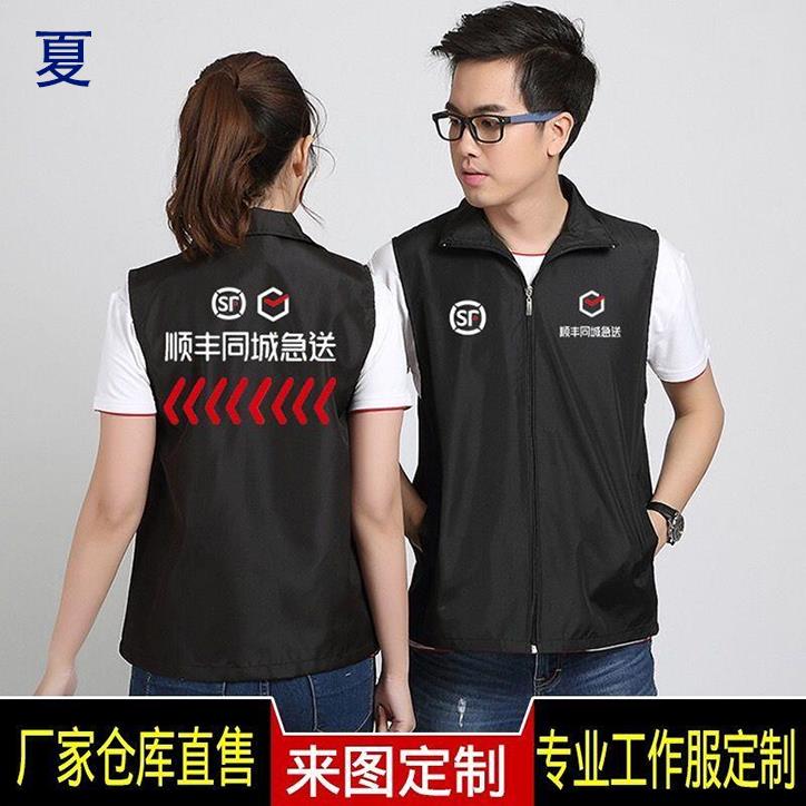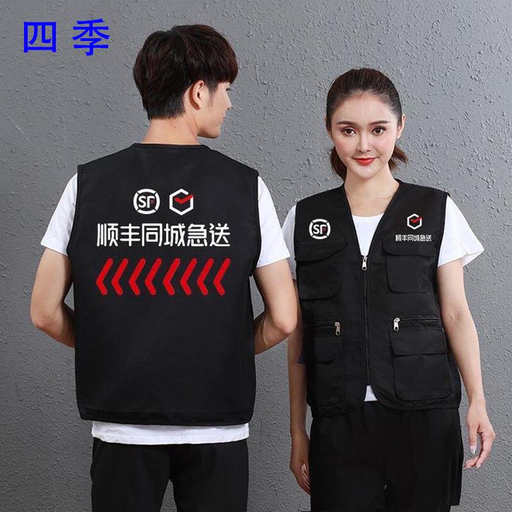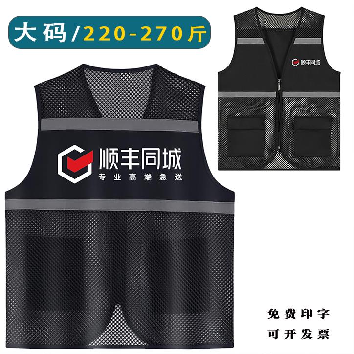顺丰同城急送马甲背心工作服黑色渔网反光印字logo口袋DIY志愿者
