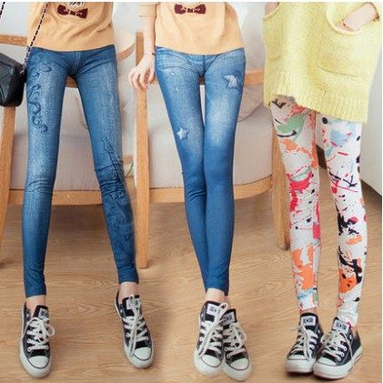 薄款仿牛仔裤女外穿打底裤小脚裤女紧身长裤大码显瘦2019春夏新款