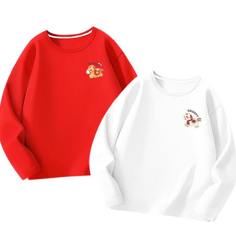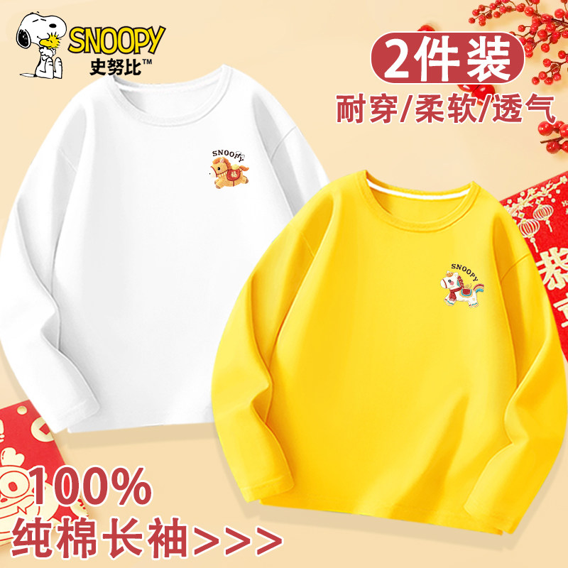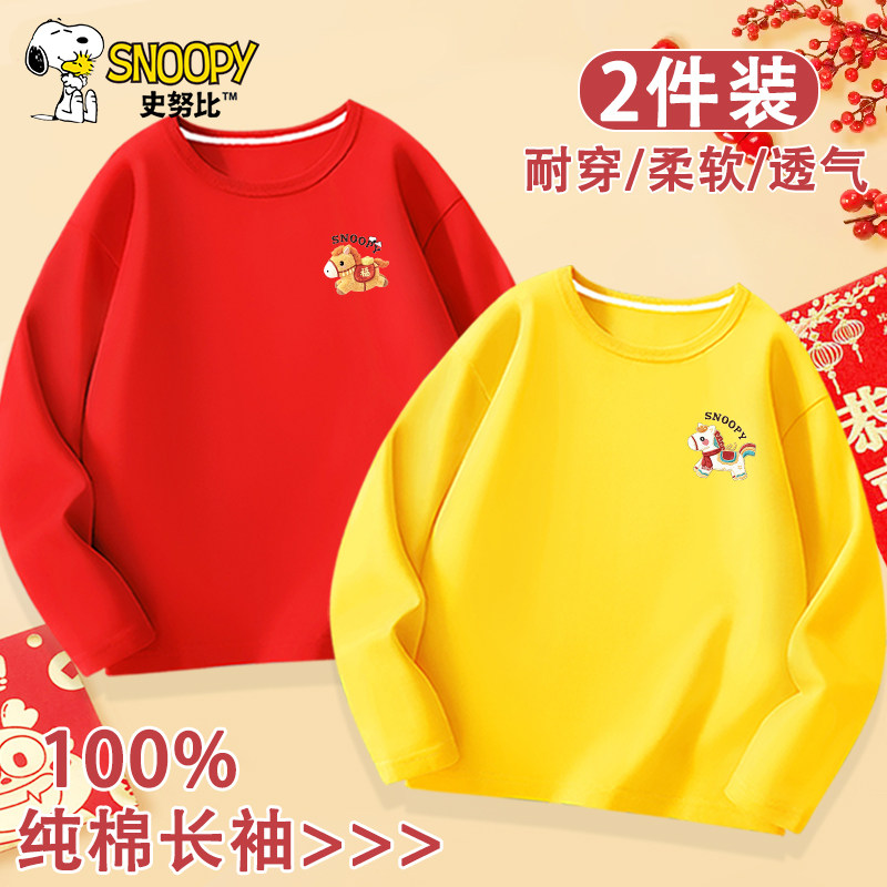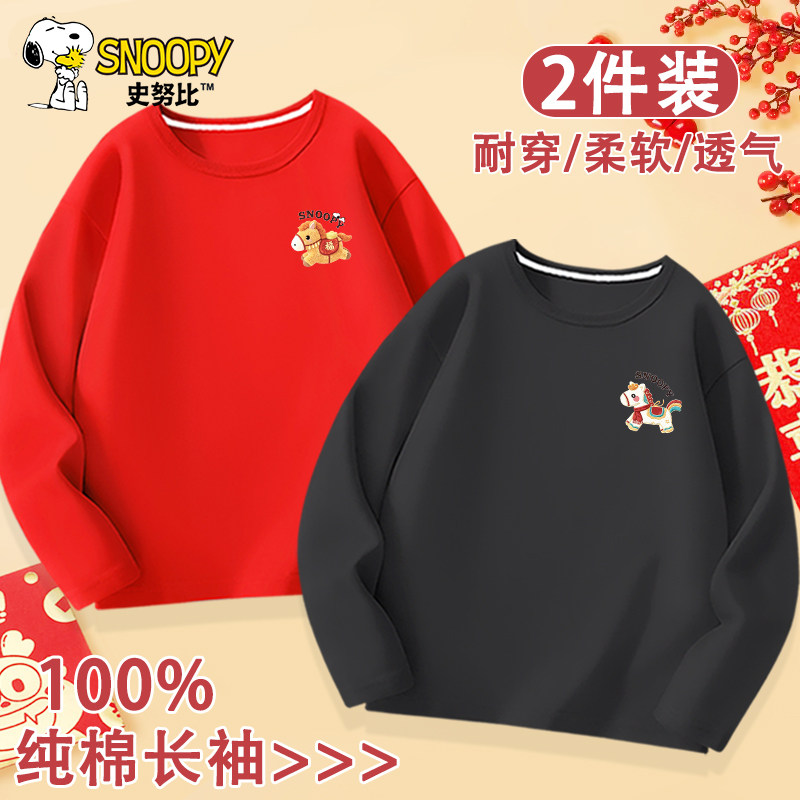 史努比男童马年100%纯棉长袖T恤26新款喜庆拜年服舒适本命年秋衣