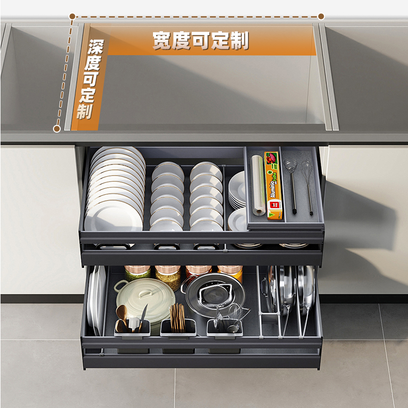 格麦橱柜双层拉篮厨房厨柜内置抽屉收纳碗篮抽屉式碗架锅具碗碟架