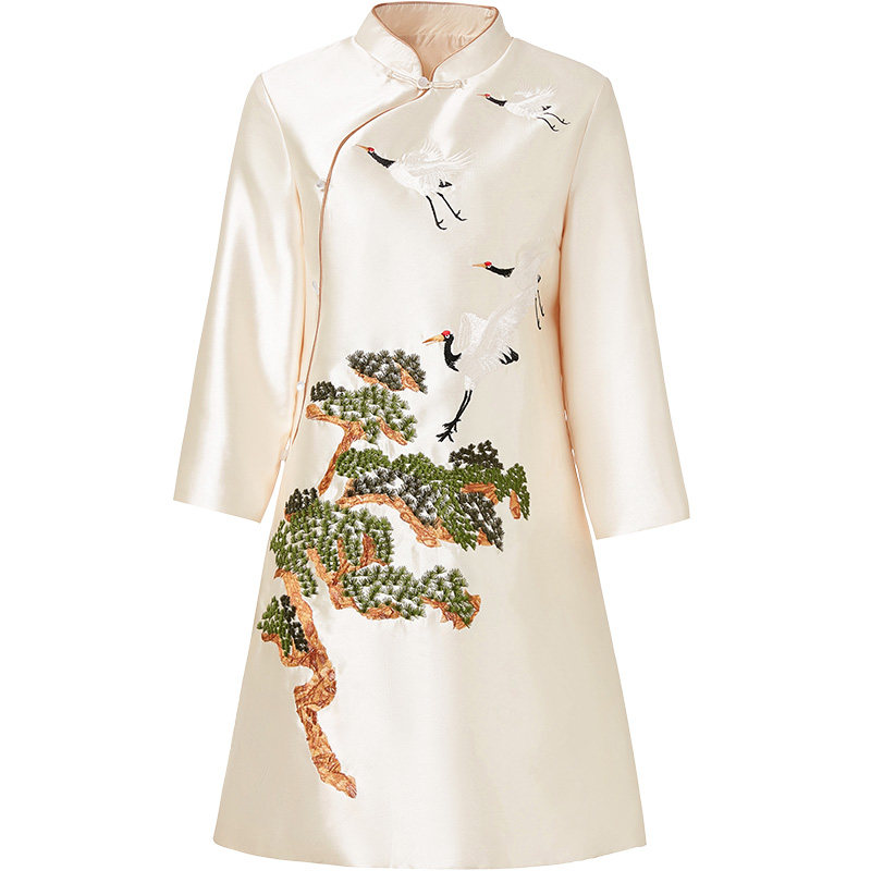 精致绣花民族风连衣裙2025秋冬女装气质修身复古中国风立领旗袍裙