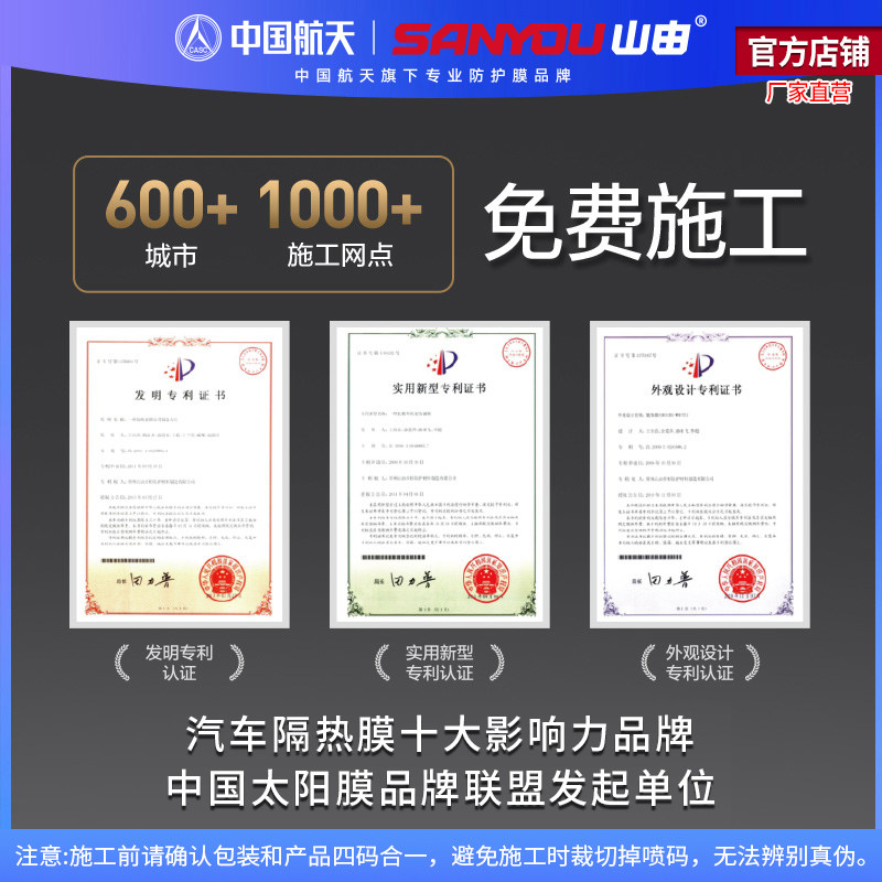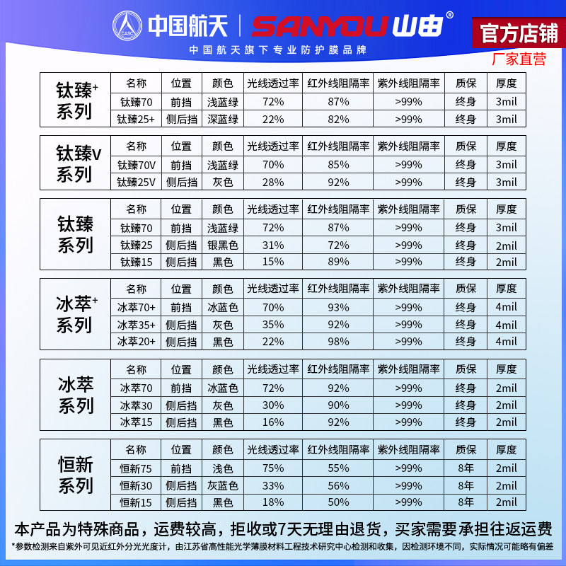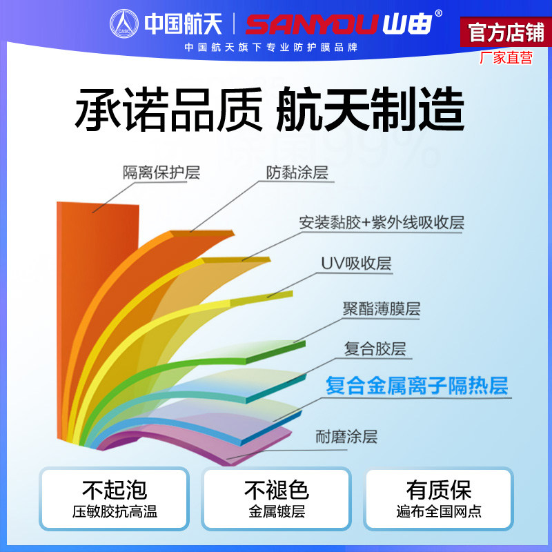 中国航天SANYOU山由汽车玻璃贴膜防爆隔热防晒膜太阳膜汽车膜冰萃