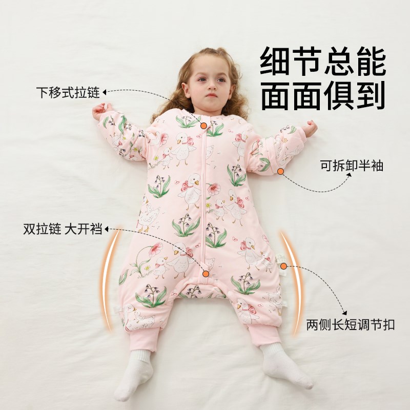 婴儿睡袋春秋冬款宝m宝分腿睡袋纯棉防惊跳儿童加厚防踢被四季大