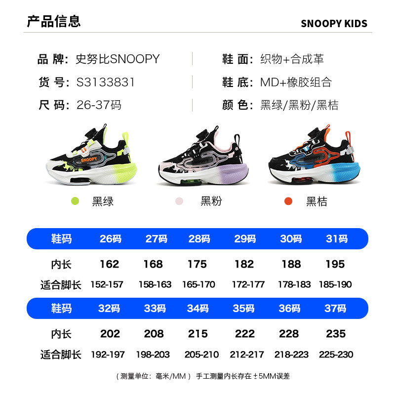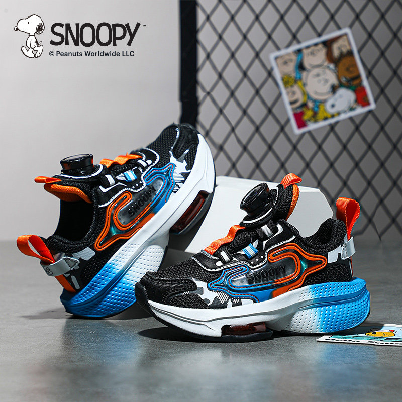 史努比童鞋男童运动鞋春秋新款儿童跑步鞋网面男孩旋转扣休闲鞋子