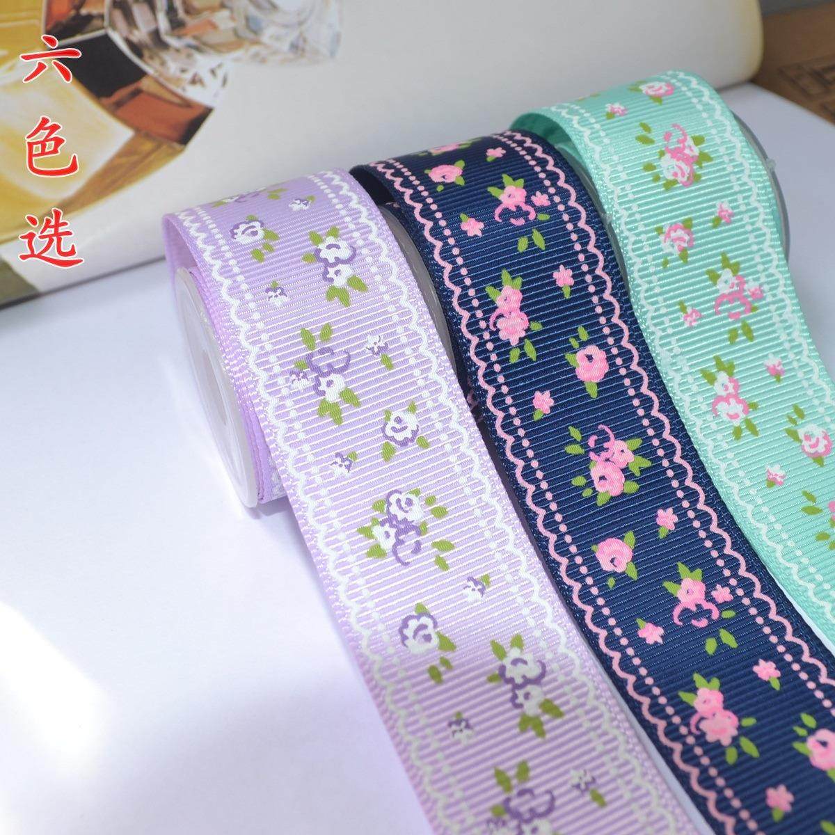 姚明织带 9~3.8mm小花印刷罗纹带DIY发饰材料