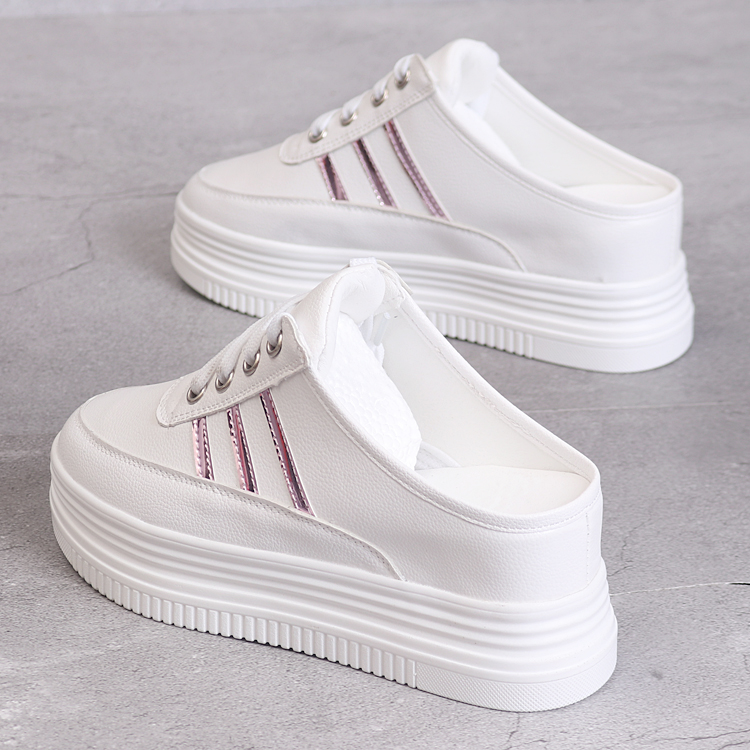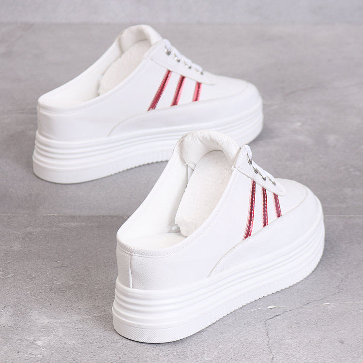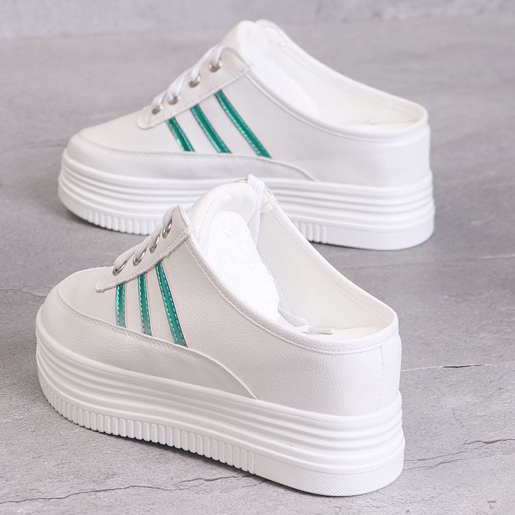 春夏8cm半拖女鞋韩版百搭镂空透气无后跟一脚蹬厚底内增高小白鞋