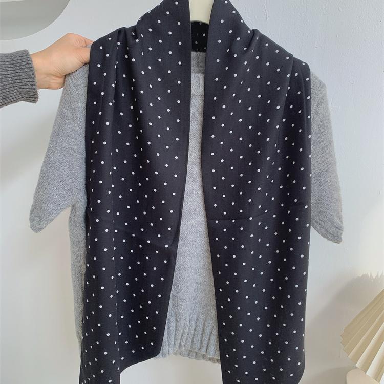韩版围巾女春秋冬季黑白波点仿丝毛护颈围巾长条领巾飘带百搭装饰