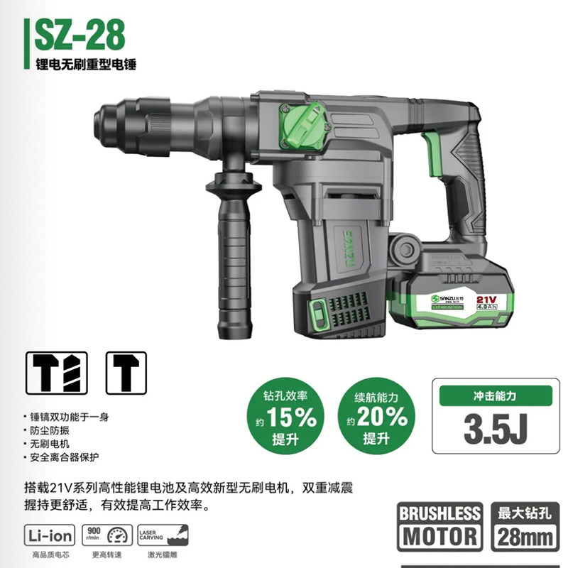 三竹SZ-28重型无刷锂电充电电锤