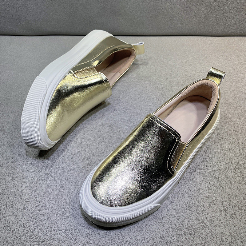 粉色厚底乐福鞋女2025新款百搭休闲真皮浅口英伦风一脚蹬懒人单鞋