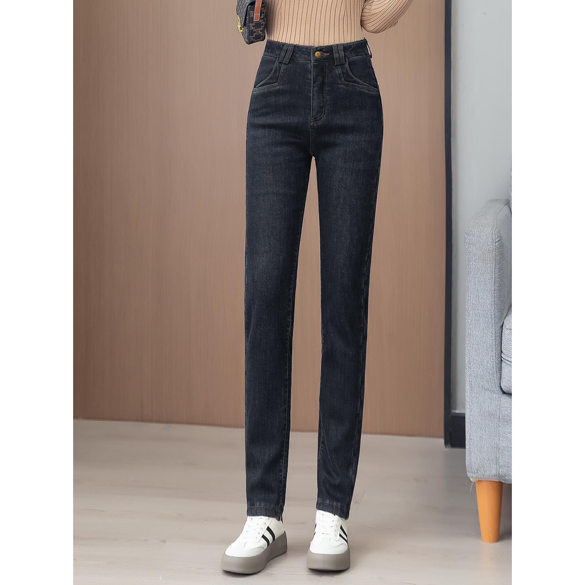 修身覆古高腰牛仔裤女2025秋冬季新款休闲保暖九分裤小个子小脚裤