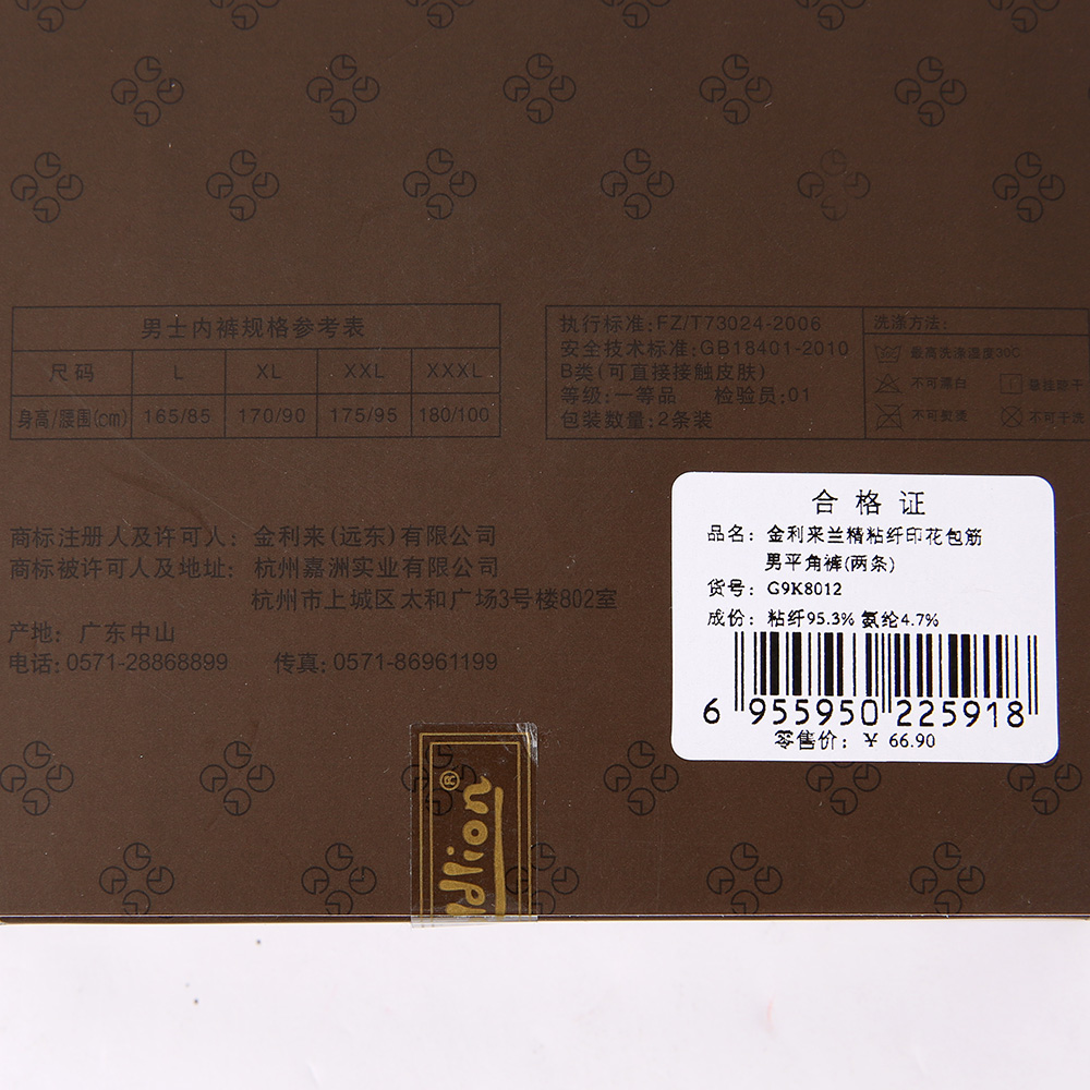 2条装金利来内裤男平角裤兰精粘纤男士中腰四角短裤U凸G9K8012