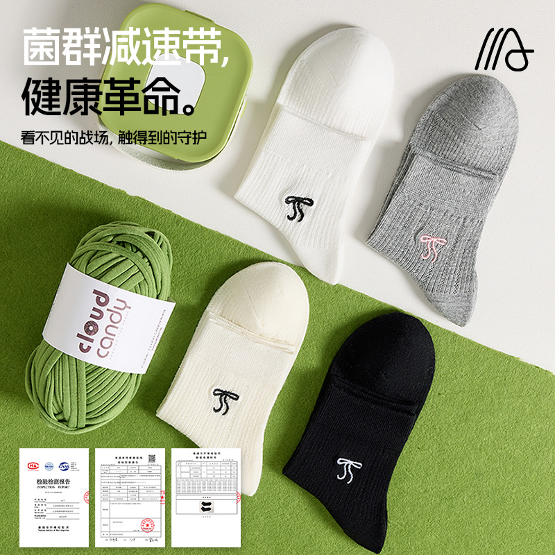 袜子女夏季薄款短筒蝴蝶结棉袜网眼透气抗菌吸汗无骨抗起球船袜FX