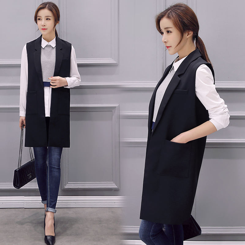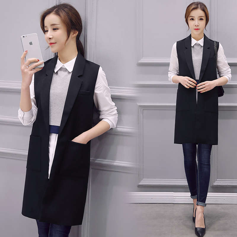 2025秋装新款无袖背心马夹外套胖MM中长款女士显瘦春秋装西装马甲